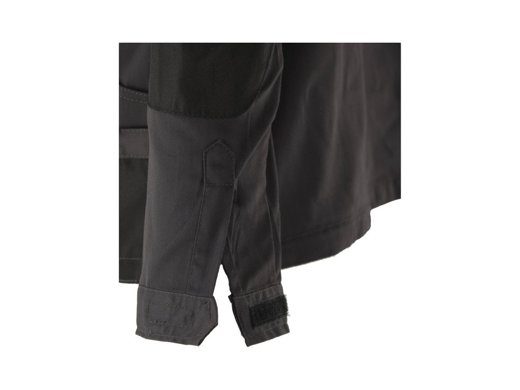 Munkapulóver nyolc zsebbel, hónaljventilációval és számos további kopásálló szövetbordával a leginkább sérülésnek kitett helyeken. A fő anyag egy megfelelő arányban lévő pamut-polieszter keverék. A szakadási szilárdság hasonló a 100% pamutból készült nehezebb ruházathoz, miközben a kis súly a anyagot könnyűvé és lélegzővé teszi. Tökéletes meleg napokra: alapadatok: anyag: 35% pamut, 65% poliészter súly: 190 g/m² munkarendezés: megerősített zseb tépőzárral a bal mellzsebben zseb tépőzárral és két keskeny zseb a jobb mellzsebben két nagy zseb a derék területén két megerősített zseb tépőzárral az öv területén További információk: dupla varrások a szakadásnak kitett helyeken további kopásálló Oxford 600D szövetbordák, többek között a könyöknél, vállaknál és zsebeknél cipzáras zárás, szélvédővel védve a tépőzáron, hónaljventilációs nyílások tépőzáras mandzsettával. A pulóver alján gombokkal állítható szélesség megfelel a 2016/425/EU rendelet munkaruházatra és kategóriára vonatkozó követelményeinek.
