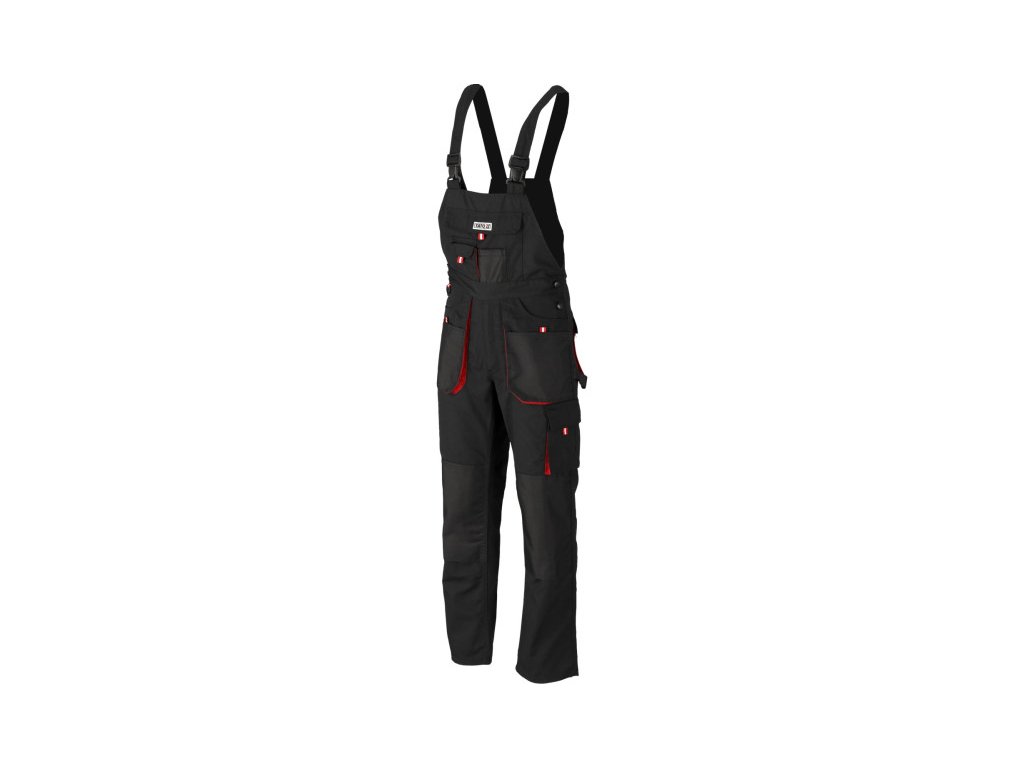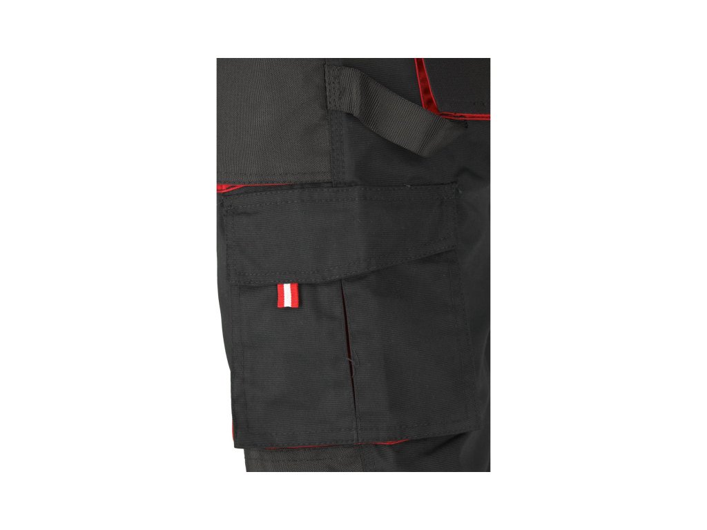 Munkanadrág, melyhez tartoznak kertésznadrágok, tizenegy zsebbel, köztük hét tépőzárral és külön zsebekkel átütőszerszámok számára. A fő anyag pamut és poliészter keveréke a megfelelő arányban. Ez a megoldás lehetővé teszi mindkét anyag erősségeinek kihasználását, beleértve a nagyobb szakítószilárdságot és a jó légáteresztést. A leginkább szakadásnak kitett helyeken a anyag összekötésére hármas varratokat használtak: alapadatok: anyag: 35% pamut, 65% poliészter súly: 275 g/m² munkaszervezés: többfunkciós zseb a mellkason, beleértve két párnázott zsebet és egy kisebb zsebet apró tárgyak számára a derékpánt alatt többfunkciós zsebek, beleértve két fő zsebet és két varrott zsebet tépőzárral, kopásálló anyagból a bal lábszáron nagy zseb tépőzárral, a bal lábszáron varrott szövet, pl. kalapács számára a jobb lábszáron keskeny zseb kopásálló anyagból, pl. tapétakés számára a hátulján két nagy zseb tépőzárral, kopásálló anyagból a derékpántnál az elején karabiner kulcsok számára a térdnél kopásálló anyagból készült zsebek, pl. 74595 További információ: Hármas varratok a szakadásnak kitett helyeken, cipzárral rögzítve. Szélesség állítható gombokkal a deréknál. Rugalmas szalag a hátulján erős rögzítéssel és állítható nadrágtartó hosszúsággal. A nadrágtartók rögzítése a hátulján erős anyagból készült erősítéssel a háromszög formájában, amely megfelel a (EU) 2016/425 rendelet követelményeinek a munkaruházat és a kategória tekintetében.
