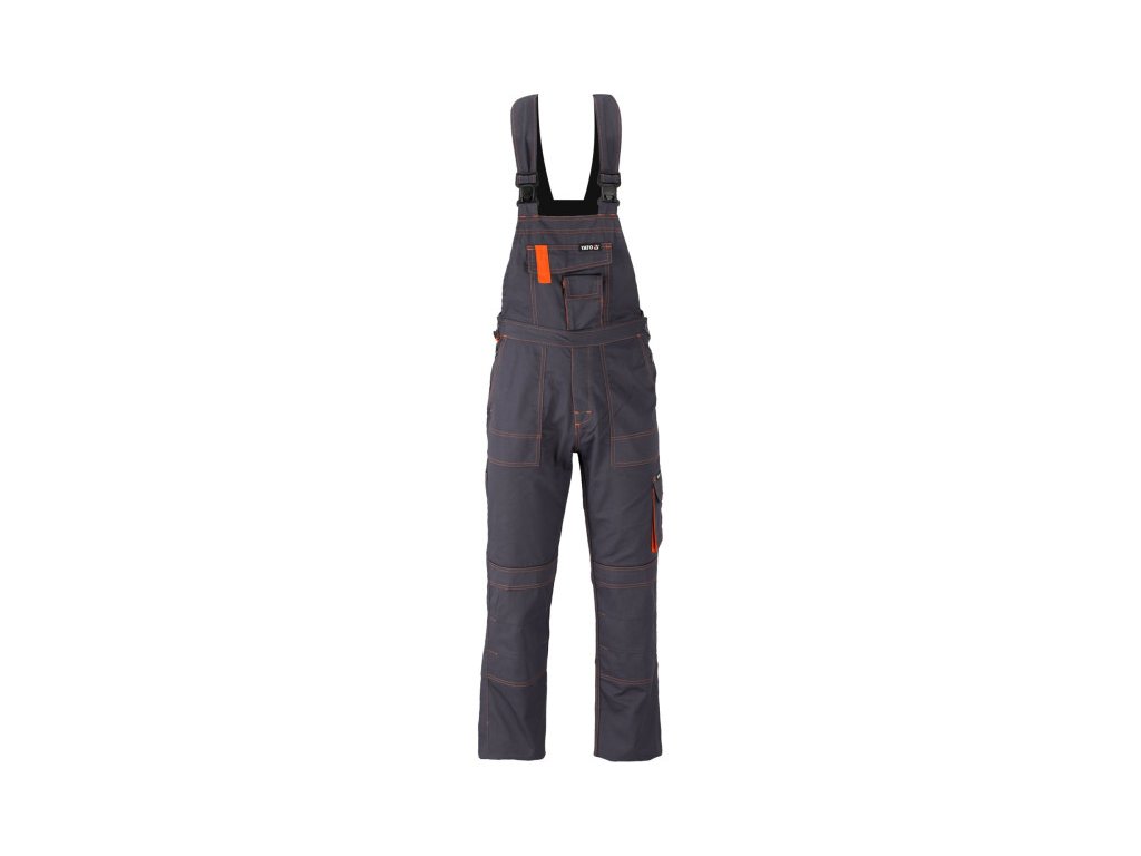 Munkanadrág szalaggal, mint a kertek, hét zsebbel, köztük négy tépőzárral és speciális zsebekkel a tápanyagok számára. A fő anyag a pamut és a poliészter megfelelő arányú keveréke. Ez a megoldás lehetővé teszi mindkét anyag előnyeinek kihasználását, beleértve a megnövekedett szakítószilárdságot és a jó légáteresztést. Alapadatok: anyag: 35% pamut, 65% poliészter súly: 245 g/m² munkaszervezés: a mellső részen két zseb tépőzárral rögzített fedéllel a derék alatt elől két fő zseb megerősített aljjal belülről egy további anyagréteggel a bal lábon nagy zseb zseb fedéllel, a jobb lábon például egy tapéta késhez rögzített keskeny zseb a derék alatt hátul egy nagy zseb tépőzárral rögzített fedéllel a térdnél táplálékbeillesztések számára, pl. 74595 További információ: dupla varrások a testek szakításának kitett helyein gombokkal rögzítve, derékszélesség szabályozása gombokkal a deréknál. Bevarrt gumi szűkítő anyag szalaggal a hátulján szilárd rögzítők hosszúságának beállításával a kefe hossza megfelel az (EU) 2016/425 rendelet munka- és kategória ruházatra vonatkozó követelményeinek.