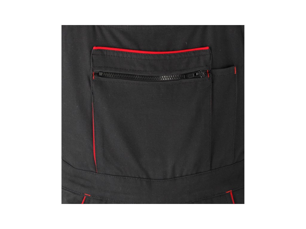 A Comfy szériájú munkanadrág, előnyösen kiemelt súlyú, magas minőségű, kefélt pamutból készült. A kefélési folyamat extra puhaságot ad az anyag felületéhez, ami rendkívül kellemes tapintást biztosít. Megfelelő vastagság, szabástechnikával - többek között többszörös helyeken, amelyek könnyen szakadnak - garancia a nagy szilárdságra. Kilenc zseb, beleértve a nagy zsebet a mellkas területén zárral és egy kalapács hurokkal, segít a munka megszervezésében. Anyagból készült nadrágtartó, állítható és rugalmas szalaggal a hátulján. Az oldalán gombok a derékszélesség állításához, és a hátulján bevarrt gumiszalag. A térdnél zsebek a térdpárnához tépőzáras rögzítéssel. Sötét színű nadrág piros csíkokkal, amelyek a díszítő funkció mellett megerősítik és megvédik a nyitott zsebek széleit a szakadástól. Alapadatok: anyag: 100% kefélt pamut súly: 300 g/m² munkaszervezés: az öv felett nagy zseb cipzárral és keskeny zseb, pl. tollnak az öv alatt két tágas főzseb a jobb lábon dupla zseb, többek között fa mérőpohárhoz, késhez vagy csavarhúzóhoz a bal lábon tágas zseb tépőzáras fedéllel a hátulján két tágas zseb további információ: a nyitott zsebek bejáratait plusz piros anyag védik piros dupla varrások és ismételt ütések a könnyen szakadó helyeken fémzárral rögzíthető fémzárral derékszélesség állítható gombokkal a hátsó bevarrt gumiszalag nadrágtartó rugalmas szalaggal a hátulján szilárd rögzítő, állítható hosszúságú nadrágtartókkal. 2016/425 munkaruházatra és kategóriára.