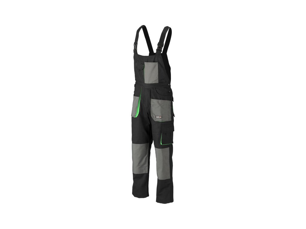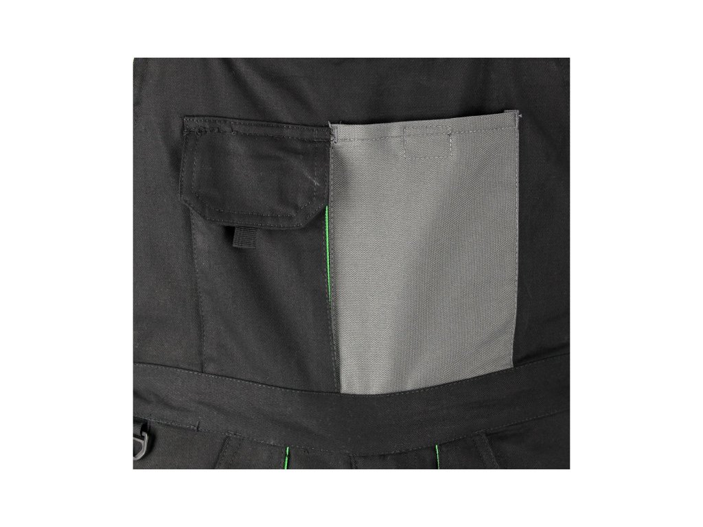 Munkanadrág tartóval, mint a kertésznadrágok, tíz zsebbel, köztük hét tépőzáras záródással és speciális zsebekkel eszközök számára. A főanyag magas súlyú pamut. A pamut bőrbarát, biztonságos az allergiások számára, és a magas súly miatt, amit ebben a modellben használtak, garantálja a jó szakítószilárdságot. Háromszoros varrásokat használtak az anyagok összekötéséhez a leginkább szakításnak kitett helyeken: alapadatok: anyag: 100% pamut súly: 270 g/m² munkaszervezés: a mellkason két zseb, köztük egy tépőzárral rögzített út, a öv alatt az elején többfunkciós zsebek, beleértve a két fő zsebet és két bevarrt zsebet tépőzáras rögzítéssel, anyaggal, amely fokozott kopásállósággal rendelkezik. A bal lábon egy nagy zseb, tépőzárral rögzített fedéllel, a bal lábon bevarrt szövet hurokban, például egy kalapács számára. A jobb lábon egy keskeny zseb anyagból, amelynek fokozott a kopásállósága, például tapétakés számára. A hátulján, a derék alatt, két nagy zseb tépőzáras rögzítéssel, félig bevont anyaggal, amely fokozott kopásállósággal rendelkezik. Az elején, a derekban, karabinerre rögzíthető kulcsok számára. A térdnél zsebek, kopásálló anyagból készült őshonos betétek számára, például 74595. További információk: Háromszoros varrások a szakításnak kitett helyeken, cipzárral rögzített záróelem. Szélesség állítása deréknál a gombos övvel. Bevarrt hangoló. Bevarrt hangoló. A tartók rögzítése a hátsó részen, tartós anyagból készült háromszög alakban, megfelelnek a (EU) 2016/425 rendelet munka- és kategóriás ruházat követelményeinek.