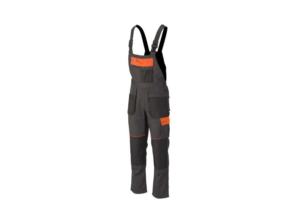 Munkanadrág mellényként, tizenhárom zsebbel, köztük hét tépőzáras és külön zsebekkel szerszámok számára. Az alapanyag pamut és poliészter megfelelő arányú keveréke. A szakítószilárdság hasonló a 100% pamutból készült nehezebb ruházathoz, miközben a kis súly a anyagot könnyűvé és tökéletesen alkalmassá teszi melegebb napokra. A szakadásnak leginkább kitett helyeken az anyag összeillesztéséhez hármas varrásokat használtak: alapadatok: anyag: 35% pamut, 65% poliészter súly: 190 g/m² munkaszervezés: a mellkasán öt zseb, köztük egy párnázottal, tépőzárral rögzítve és három keskeny, például tollnak az öv alatt elöl multifunkciós zsebek, beleértve két fő zsebet és két varrott zsebet, tépőzárral rögzítve, kopásálló anyagból a bal lábon nagy zseb, fedőlappal, tépőzárral rögzítve a bal lábon egy textilhurokba varrt, például kalapácsnak a jobb lábon keskeny zseb, kopásálló anyagból, például tapétakésnek a öv alatt hátul két nagy zseb, fedőlappal, tépőzárral rögzítve, fél anyaggal bevonva, amely fokozott kopásállósággal rendelkezik a térdnél, anyagból készült zsebek - ellenálló anyagból készült zsebek a romboló betétek számára, például. 74595 További információk: Hármas varrások a szakadásnak kitett helyeken, cipzárral rögzítve. A derékszélesség gombokkal állítható. Hátsó rugalmas szalag szilárd rögzítővel, állítható hosszúságú nadrágtartókkal. Erősítés a nadrágtartó rögzítésénél, tartós anyagból, háromszög alakban megfelel az (EU) 2016/425 rendelet munkaruházatra vonatkozó és kategóriájú követelményeinek.