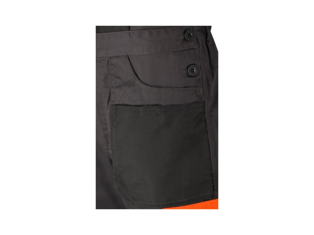 Munkanadrág galléros vállpánttal, tizenhárom zsebbel, közülük hét tépőzáras és speciális zsebekkel átütéshez. A fő anyag a pamut és a poliészter megfelelő arányú keveréke. A szakadószilárdság hasonló a 100% pamutból készült nehezebb ruhákhoz, miközben a kis súly a anyagot könnyűvé és tökéletesen alkalmas melegebb napokra. A leginkább szakadásnak kitett helyeken a anyag összeköttetéseihez hármas varratokat használtak: alap adatok: anyag: 35% pamut, 65% poliészter súly: 190 g/m² munkaszervezés: a mellkason öt zseb, köztük egy tépőzáras párnázott zseb és három keskeny, például tollnak az öv alatt elöl multifunkciós zsebek, beleértve két fő zsebet és két varrott tépőzáras zsebet, amelyek kopásálló anyagból készültek a bal lábon nagy fedeles zseb, tépőzárral rögzített a bal lábon textilhurokban, például kalapácsnak a jobb lábon keskeny zseb, amely erősített kopásálló anyagból készült, például tapétakésnek az öv alatt hátul két nagy fedeles zseb, tépőzárral rögzített, kopásálló anyagból készült térdnél szövet - kopásálló szövet zsebek a romboló betétekhez, például 74595 További információk: Háromszoros varratok a szakadásnak kitett helyeken, cipzárral rögzített. Az övszélesség gombokkal állítható. Rugalmas szalag a hátulsó szilárd rögzítőn állítható hosszúságú vállpántokkal. Az vállpántok rögzítésének megerősítése hátul tartós anyagból készült háromszög formájában megfelel az (EU) 2016/425 rendeletben foglalt munkaruházati és kategóriás követelményeknek.