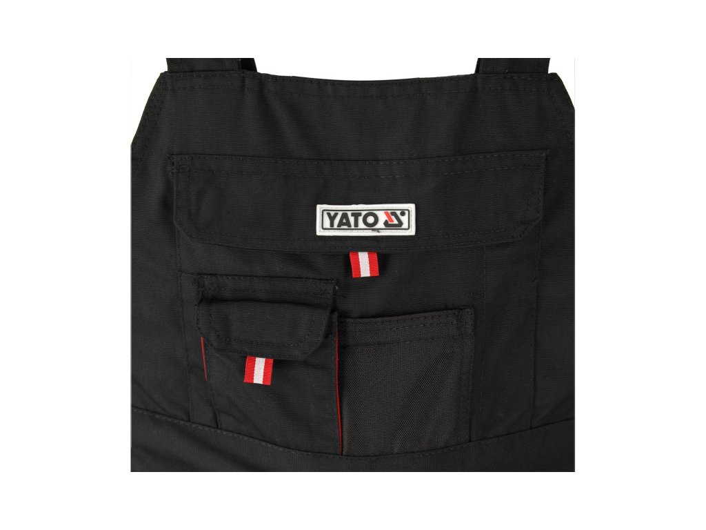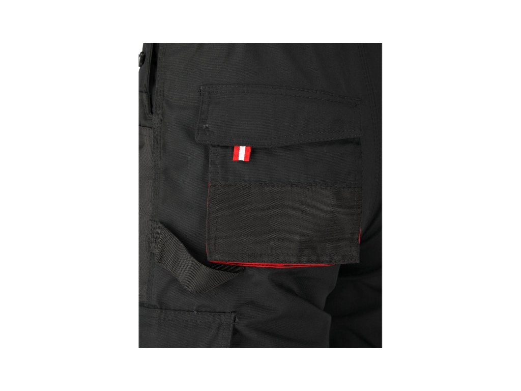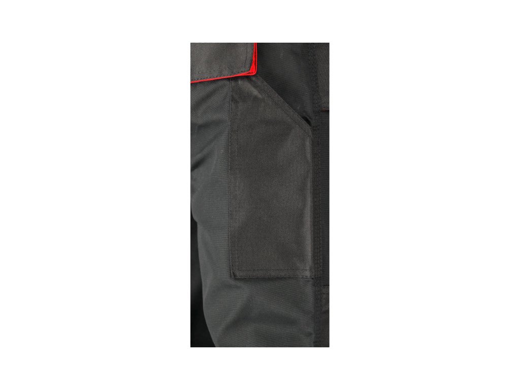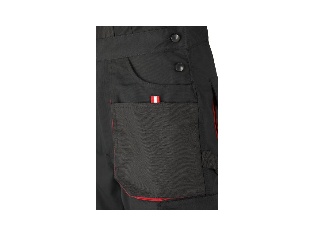 Munkanadrág szalaggal, kerti modellekhez hasonlóan, tizenegy zsebbel, ebből hét tépőzáras és különleges zsebekkel szerszámok számára. A főanyag egy pamut és poliészter arányos keveréke. Ez a megoldás lehetővé teszi mindkét anyag előnyeinek kihasználását, beleértve a nagyobb szakítószilárdságot és a jó légáteresztést. A legtöbbet igénybe vett helyeken a anyagokat hármas varrással erősítették: alapadatok: anyag: 35% pamut, 65% poliészter súly: 275 g/m² munkaszervezés: Többfunkciós zseb a mellkason, beleértve két párnázott zsebet és egy kisebb zsebet apró tárgyak számára a derékpánt alatt többfunkciós zsebek, beleértve két fő zsebet és két behúzott zsebet tépőzárral, amelyek a kopásállóságot növelő anyagból készültek a bal lábszáron nagy zseb tépőzárral rögzített fedéllel a bal lábszáron varrott textilzseb, például kalapács számára a jobb lábszáron keskeny zseb kopásálló anyagból, például tapétakés számára a derék alatt hátul két nagy zseb tépőzárral rögzített fedéllel, félig kopásálló anyagból a deréknál elől karabiner kulcstartóval a térdnél kopásálló anyagból készült zsebek, például 74595-es betétek számára További információk: Hármas varrás a szakadásnak leginkább kitett helyeken, cipzárral rögzített cipzárral. Állítható szélességű derékpánt gombokkal. Rugalmas szalaggal ellátott anyagok hátul erős rögzítéssel, állítható hosszúságú szalagokkal. Háromszög alakú, tartós anyagból készült erősítés a szalagok hátuljának rögzítésénél megfelel a munkaruházat és a kategória vonatkozásában az (EU) 2016/425 rendelet előírásainak.