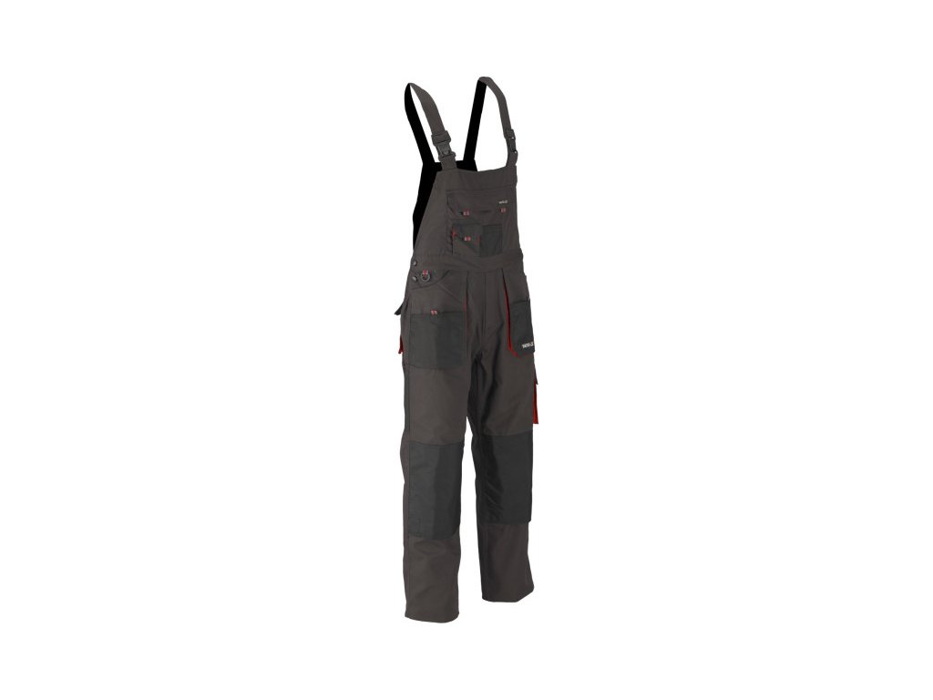 Pracovné nohavice na uzde s jedenástimi vreckami, siedmimi vreckami na suchý zips a špeciálnymi vreckami na chrániče kolien.
