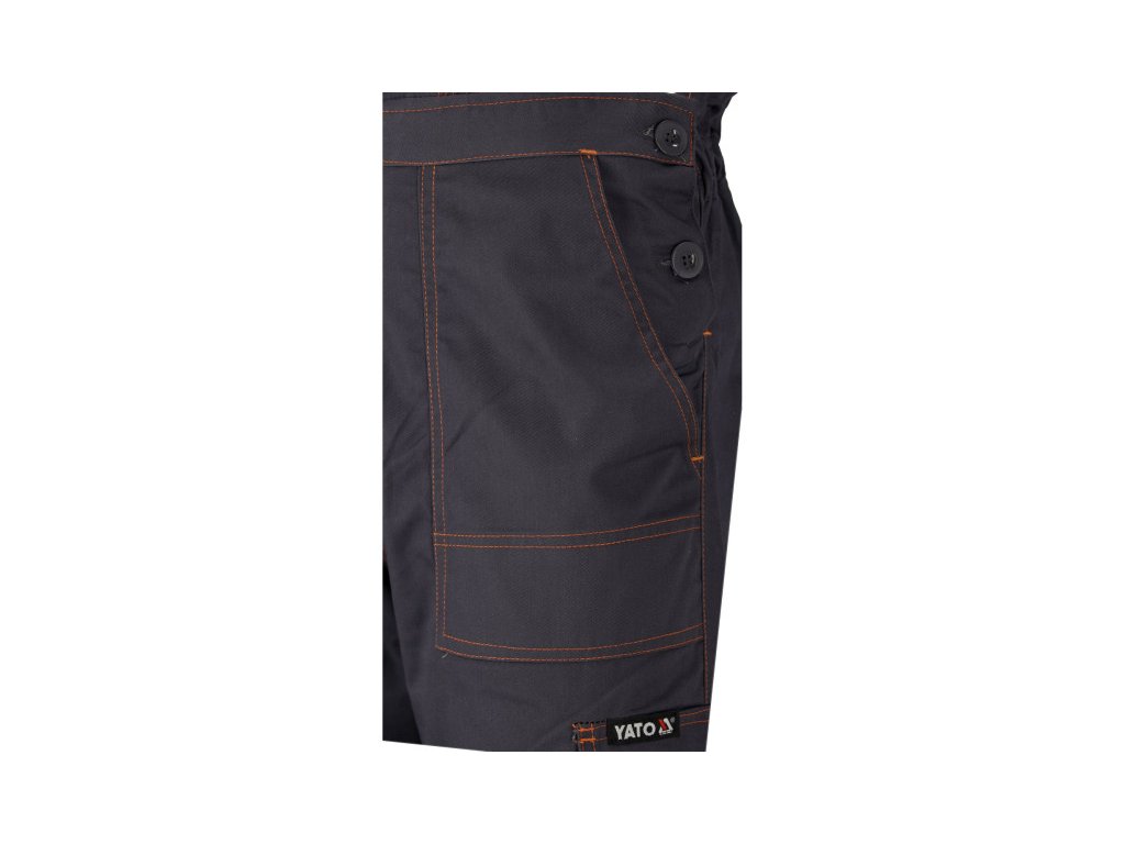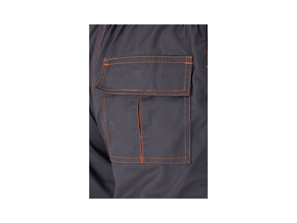 Munkanadrág mellényként, például kertekhez, hét zsebbel, köztük négy tépőzáras és speciális zsebekkel a táplálékok számára. A fő anyag a pamut és a poliészter megfelelő arányban. Ez a megoldás lehetővé teszi mindkét anyag előnyeinek kihasználását, beleértve a megnövelt szakadási ellenállást és a jó légáramlást. Alapadatok: anyag: 35% pamut, 65% poliészter súly: 245 g/m² munkaszervezet: a mellkason két tépőzárral rögzített zseb, az öv alatt elöl két fő zseb megerősített aljjal, belülről egy további anyagrétellel a bal lábon nagy zseb, a jobb lábon például tapétakés számára kialakított keskeny zseb, hátrészén nagy tépőzáras zseb, a térdeken táplálék betétek számára kialakított hely, pl. 74595 További információ: dupla varrások a test szakadásának kitért helyein gombokkal rögzített, derékszélesség állítható gombokkal az övben. Bevarrt gumis szűkítő mellényként, rugalmas szalaggal a hátulján, szilárd rögzítőkkel, állítható hosszúságú kefével, megfelelnek a munka- és kategóriaruha (EU) 2016/425 rendelet követelményeinek.