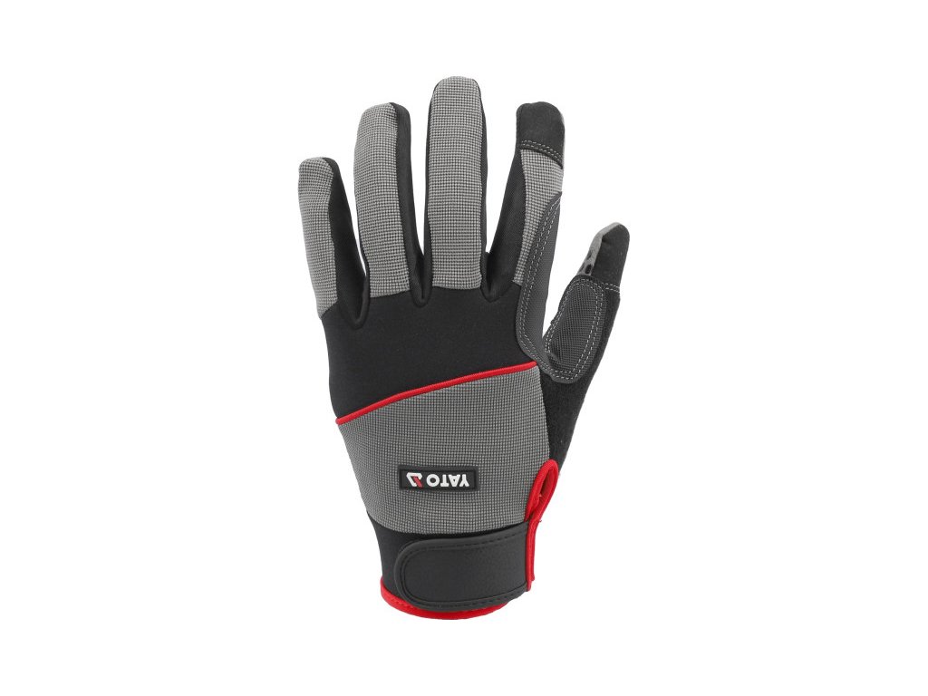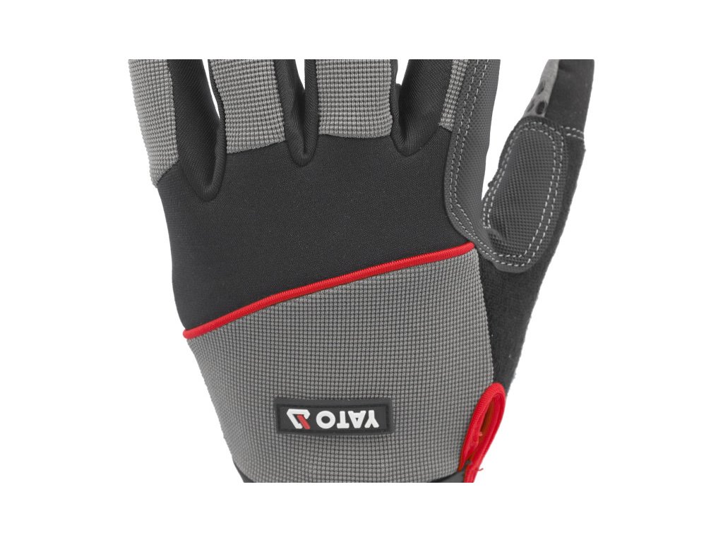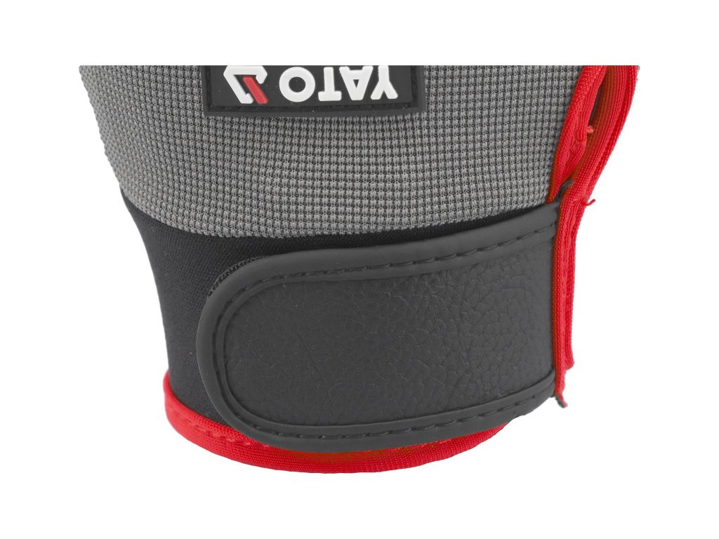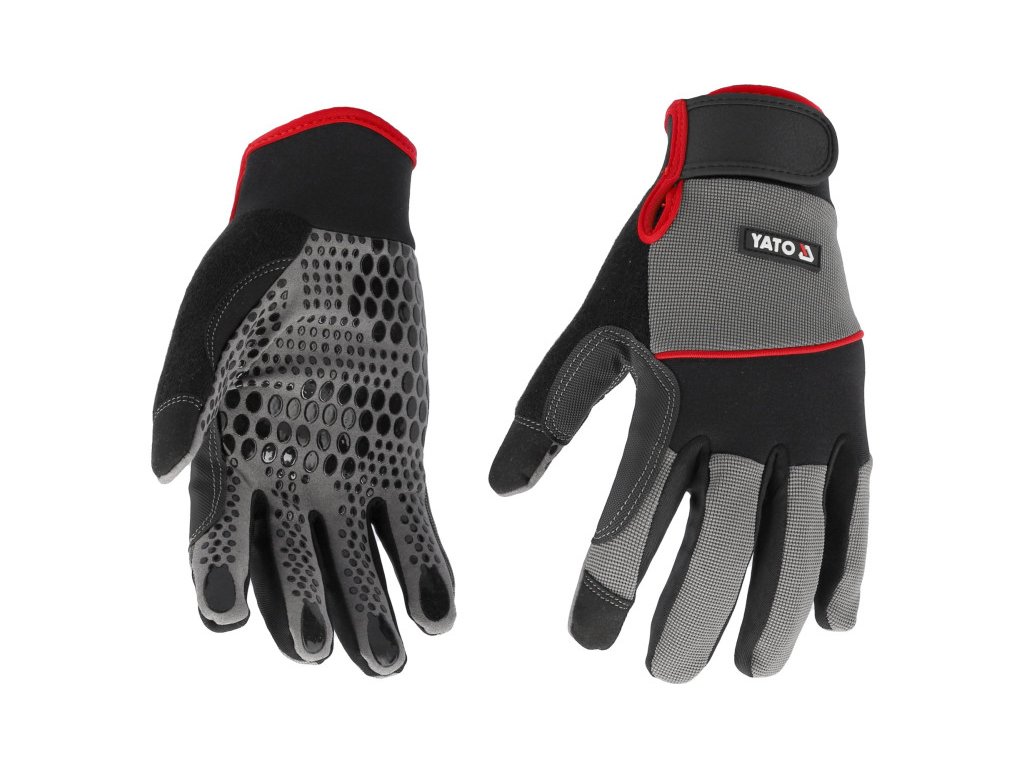 Munkakesztyű további megerősítésekkel és szilikon csúszásgátló bevonattal a fogás területén, ami sokkal könnyebbé teszi a tárgyak megfogását és csökkenti az eszköz kézből való kicsúszásának lehetőségét. Kéziszerszámokkal, elektromos szerszámokkal vagy áruk kezelésekor ajánlott.