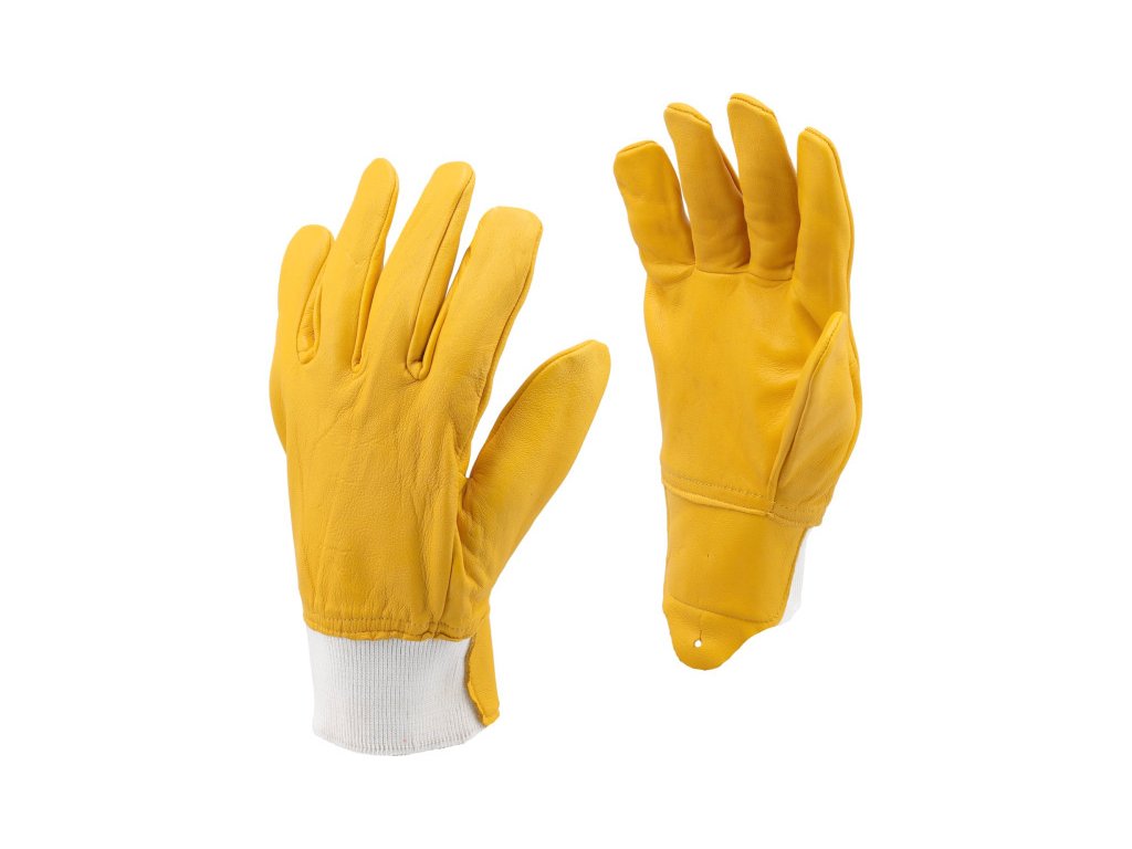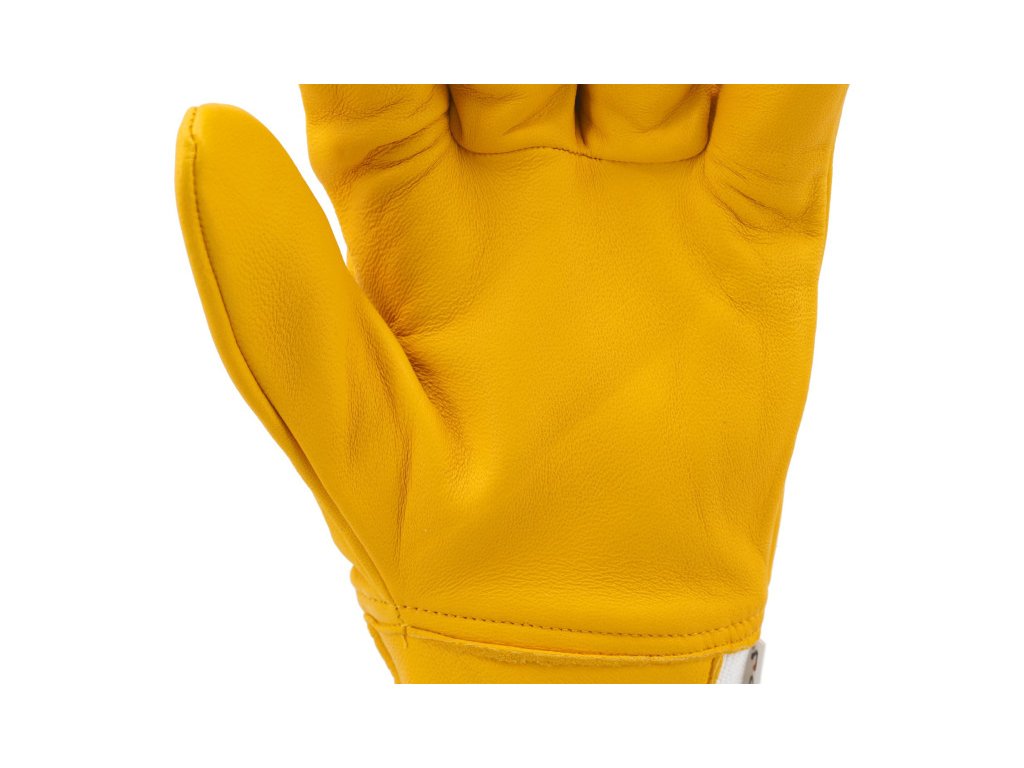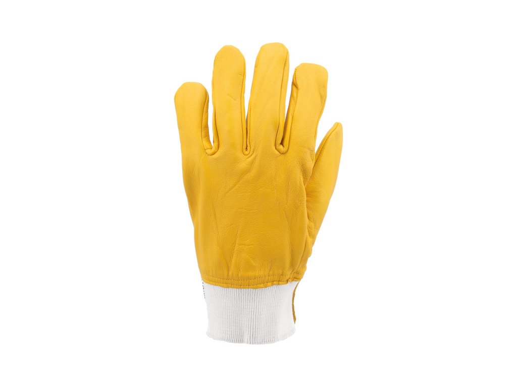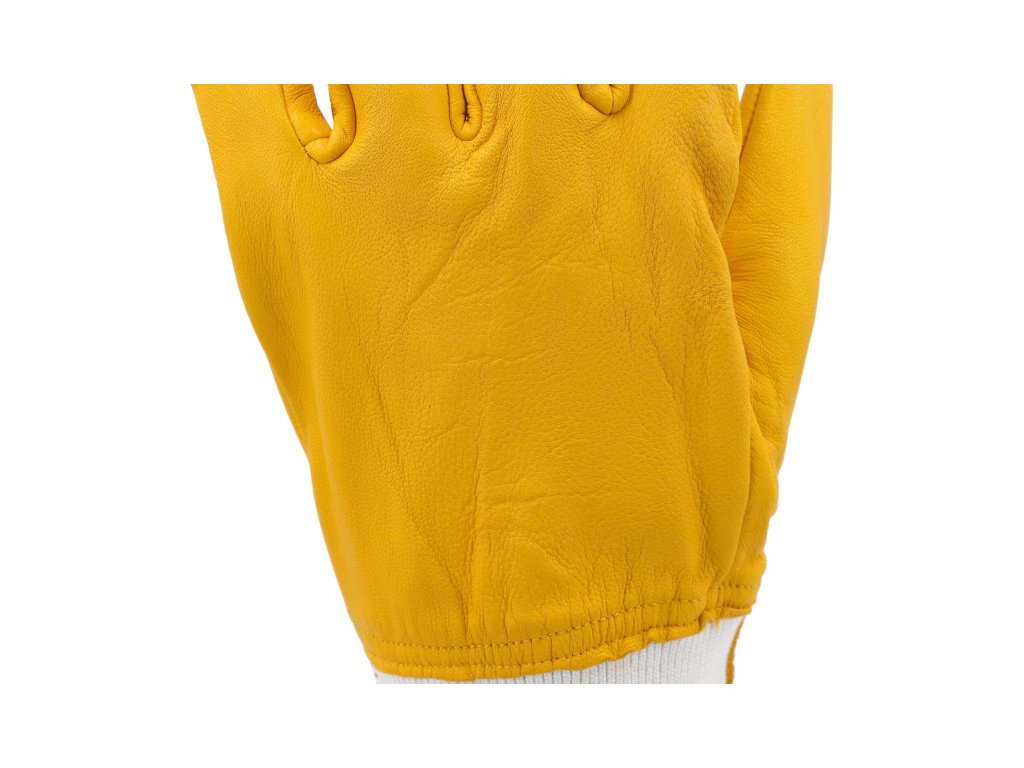 Vastag, mégis puha természetes bőrből készült munkakesztyűk sárga színben. Az elasztikus mandzsetta Velcro helyett gyors felvételt tesz lehetővé. Hasznosak lehetnek a kertben végzett munkához, koszos tárgyak kezeléséhez, valamint olyan munkák végzésénél, ahol nem szükséges a nagy precizitású fogás.