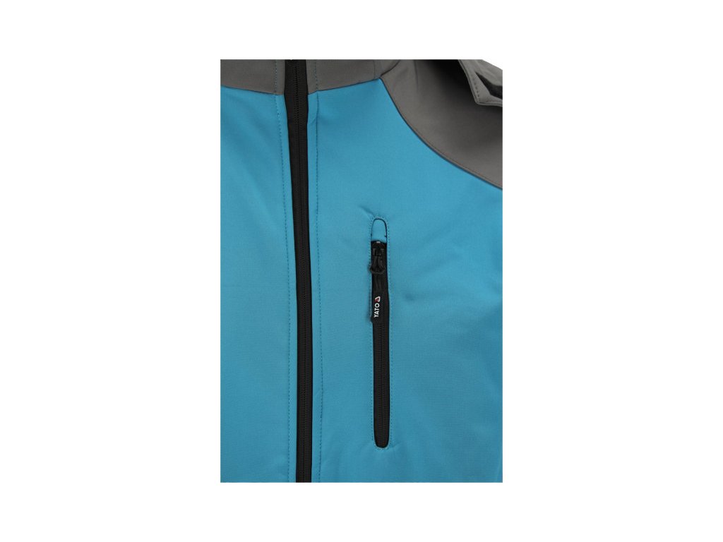 Softshell kabát három, vízálló cipzárral rögzített zsebbel és levehető kapucnival. Az anyag modern háromrétegű és könnyű poliészter szövet, spandex hozzáadásával, különleges mikro-nyílások struktúrájával, amelyek blokkolják a vízcseppek belső behatolását, és ugyanakkor lehetővé teszik az izzadság párolgását a vízgőz formájában kívülre. A kabát tökéletesen megtartja a test melegét, kényelmes légcirkuláció mellett, és sikeresen helyettesíti a nehezen lélegző fleece pulóvert. A középső rétegű, termoplasztikus poliuretánból készült laminát még mérsékelt esőben is vízállóságot biztosít. Alap adatok Anyag: 96% poliészter, 4% spandex súly: 320 g/m² Munkaszervező zseb vízálló cipzárral a bal mellkason két zseb vízálló cipzárral a derék területén a derék területén. (az anyag m²-je ellenáll egy 8 m magas vízoszlop nyomásának - 8000 mm). Légáteresztő képesség 3000 MVP (kb. 3000 g víz/izzadság párolog el 1 m² anyagból kívülre 24h alatt) Rögzítés vízálló cipzárral, cipzárral rögzített tűvel, további cipzárral Velcro horgok a galléron az ujjak végén Velcro záródású mandzsettákkal szélesség állítása a kabát alján szorítókkal, lezáróval kombinálva a síruházatot használók által elismert kényelem a munkaruha funkcionalitásával megfelel az (EU) 2016/425 szabálynak a munkaruha és kategória követelményeinek. A vízállóság paramétere eddig leggyakrabban a síruházatban használták, kifejezi a m² anyag ellenállását a milliméteres vízoszlop nyomásával szemben. 0 - 1500 mm - szinte nulla vízállóság, száraz körülmények közötti munka 1500 - 5000 mm - vízállóság enyhe eső és finom hó esetén 5000 - 10 000 mm - vízállóság mérsékelt eső és hó esetén 10 000 - 15000 mm - vízállóság erős eső és hó esetén nagy szél nélkül A légáteresztő képesség vagy páraáteresztő képesség azt jelenti, hogy az anyag képes vezetni az izzadságot a pára formájában kifelé. Minél magasabb a paraméter, annál hatékonyabb a légcirkuláció. Az 2000 - 5000 MVP értékek kompromisszumot jelentenek a test melegének megőrzése és a munkavégzés kényelme között mérsékelt fizikai aktivitás esetén, pl. építkezésen való munka közben.