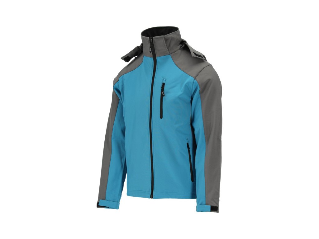 Softshell dzseki, három vízálló cipzárral rögzített zsebbel és levehető kapucnival. Az anyag egy modern, háromrétegű, könnyű poliészter szövet, amely spandex hozzáadásával készült, különleges mikrolyukak szerkezetével, amely blokkolja a vízcseppek belső behatolását, ugyanakkor lehetővé teszi az izzadtság elpárologtatását vízgőz formájában az anyagból kifelé. A dzseki tökéletesen megőrzi a test melegét, kényelmes levegőcirkulációval, és sikeresen helyettesíti a nehezen lélegző fleece anyagú melegítőfelsőt. A termoplasztikus poliuretánból készült laminált középső réteg még mérsékelt esőben is biztosítja a vízállóságot. Alap adatok Anyag: 96% poliészter, 4% spandex súly: 320 g/m² Munkaszervezési zseb vízálló cipzárral a bal mellrészen, két zseb vízálló cipzárral a deréktájon. (A m² anyag elbírja egy 8 m magas vízoszlop nyomását - 8000 mm). Légáteresztő képesség 3000 MVP (kb. 3000 g víz/izzadtság párolog el 1 m² anyagból 24h alatt) Vízálló cipzárral rögzíthető, cipzárral kiegészített cipzár, Velcro horgok a galléron, mandzsettával végződő ujjak, Velcro zárással szélesség állítható a dzseki alján, tömítőgyűrűkkel, blokkolással, a síruházatot használók által értékelt használati kényelem kombinációja a munkaruházat funkcionalitásával, megfelel az (EU) 2016/425 rendelet munkaruházatra vonatkozó követelményeinek és kategóriájának. A vízállóságot jelző paraméter eddig leginkább a síruházatban használták, kifejezi a m² anyag ellenállását egy milliméter vízoszlopnak. 0 - 1500 mm - majdnem nulla vízállóság, száraz körülmények közötti munka 1500 - 5000 mm - vízállóság enyhe eső és finom hó esetén 5000 - 10 000 mm - vízállóság mérsékelt eső és hó esetén 10 000 - 15000 mm - vízállóság erős eső és hó esetén nagy szél nélkül Légáteresztő képesség, más néven páraáteresztő képesség, az anyag képességét jelenti az izzadtság vezetésére gőz formájában az anyagból kifelé. Minél magasabb a paraméter, annál hatékonyabb a levegő cirkulációja. Az 2000 - 5000 MVP értékek kompromisszumot jelentenek a test hőjének megőrzése és a mérsékelt fizikai aktivitás, pl. egy építkezésen történő munka kényelme között.