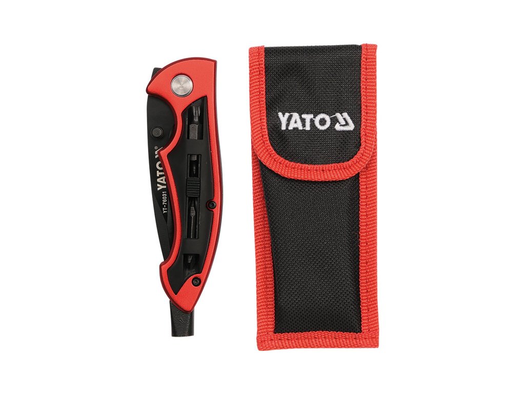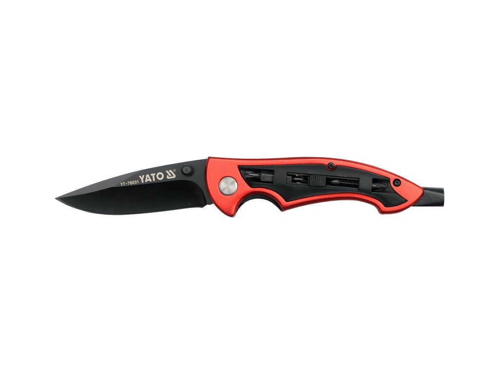 YATO összecsukható kés fekete 'drop point' típusú pengevel, 80 mm hosszúságban.