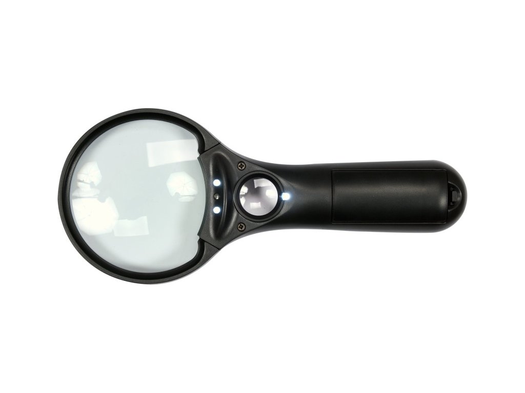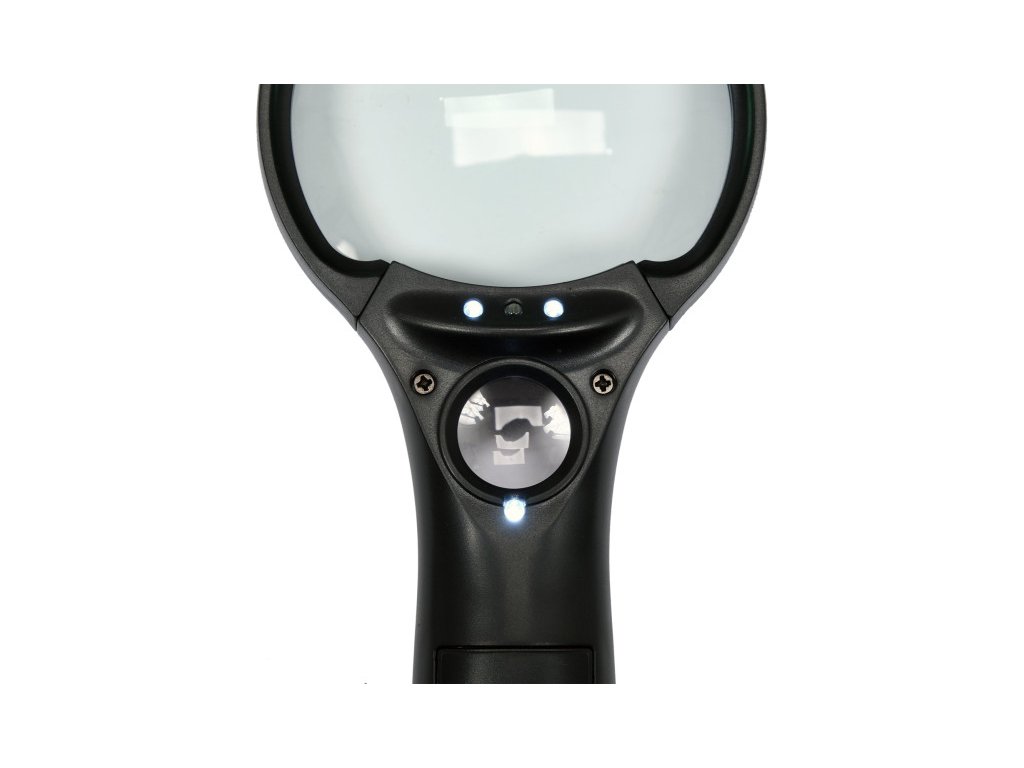 Világítással ellátott nagyító két lencsével. A ház masszív műanyagból készült. Két nagyítóüveg: a nagyobb, 75 mm átmérőjű üveg lencse 3x-os nagyítást biztosít, míg a kisebb, 20 mm átmérőjű akril lencse akár 45x-ös nagyításra képes. A három LED vagy egyetlen UV dióda megvilágítása megkönnyíti a forrasztási pontok vizsgálatát, az SMD chipek jelölésének olvasását, illetve sötétben is lehetővé teszi a könnyebb tájékozódást.