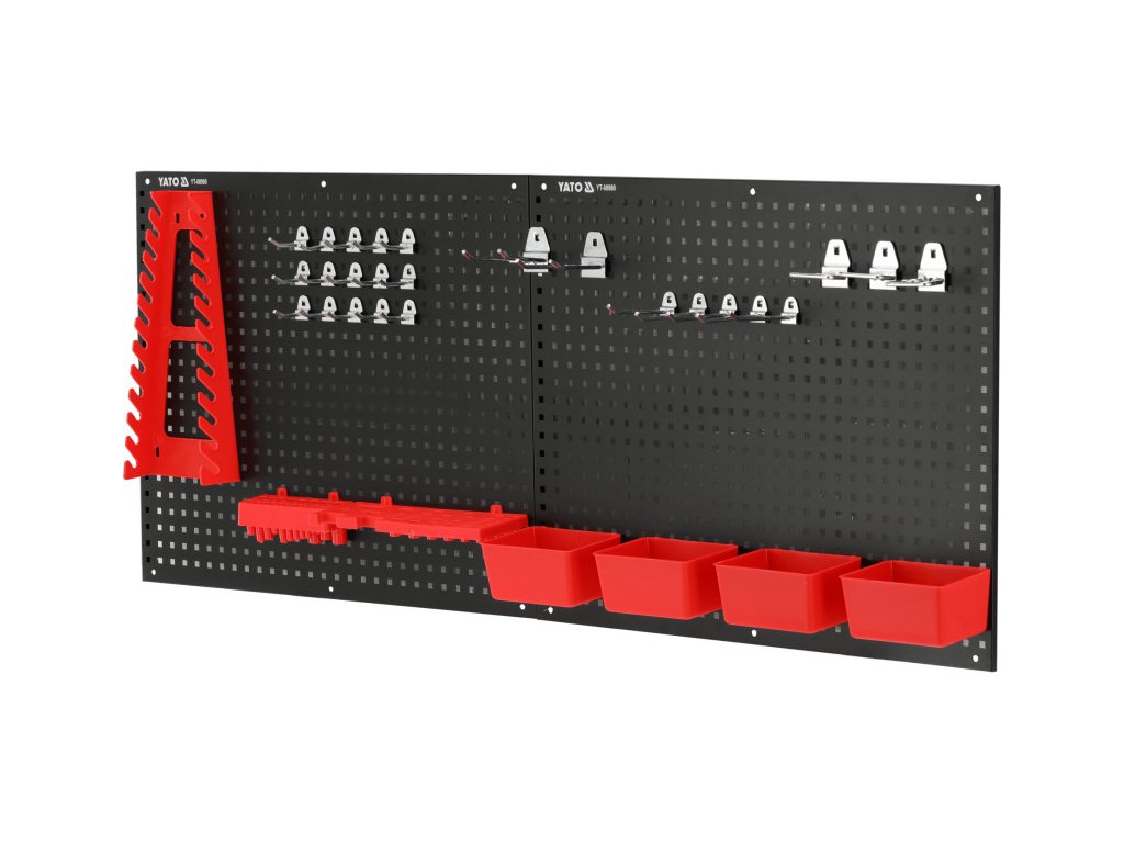 Kettő lyukasztott szerszámtábla 32 szerszámtároló tartozékkal felszerelve elhelyezésre tervezve.