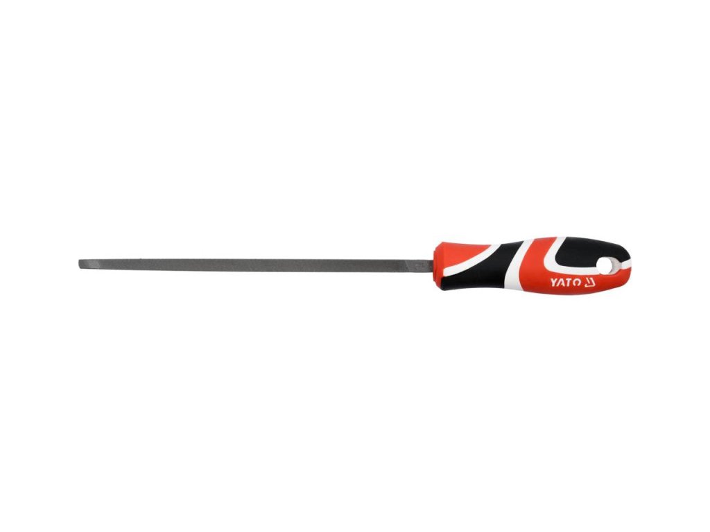 Négyszögletű profilú fémes reszelő, kúpos, háromvágású, 200mm, háromkomponensű nyéllel a Yato-tól.