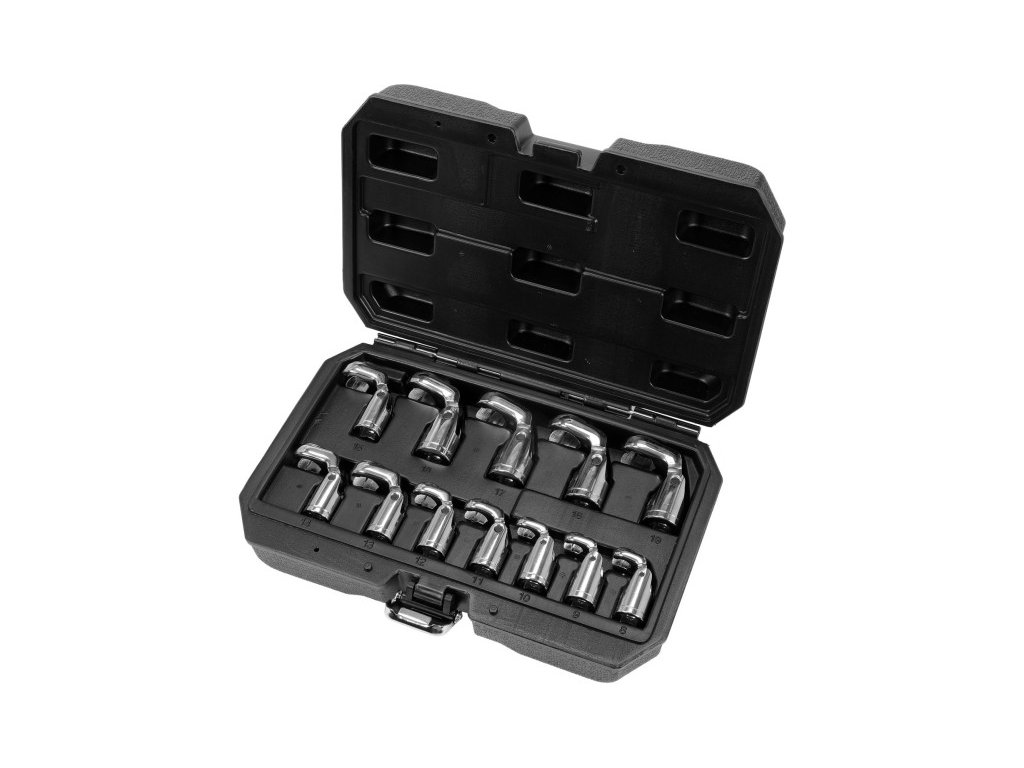Nyitott végű csavarkulcskészlet. Tökéletesen alkalmas elektromos drótokkal, hidraulikus, pneumatikus vagy üzemanyag-ventilátorok bármilyen érzékelőinek leszerelésére és meghúzására anélkül, hogy kárt okozna bennük. A nyitott karikák és a kényelmes csavarkulcs tökéletesen megkönnyíti a munkát a korlátozott hozzáférésű helyeken. A CRV gyártási anyag HRC 42-48 értékkel rendelkezik, így a csavarkulcsok tartósak. A műanyag, erős dobozban 12 méret található 8-19MM-ig.