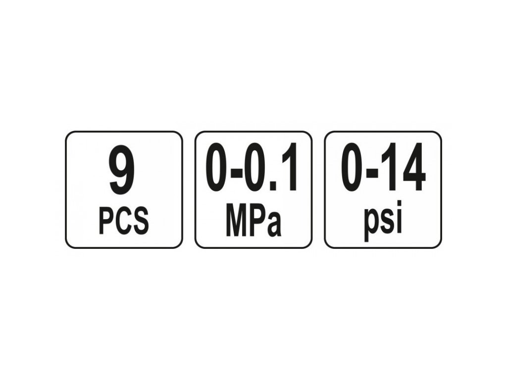 Sada tlakomerov a vákuometrov 9 kusov 1 bar YATO