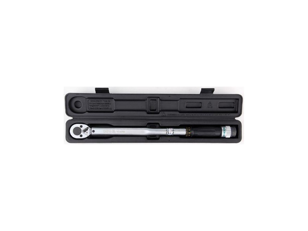 A kulcs króm-vanádium acélból készült, ami biztosítja a tartósságát és szilárdságát. Mechanikus dinamometrikus nyúlással rendelkezik, ami a kívánt szorítóerő elérését követően egy szegmensel ugrál, jellegzetes hangot adva. A pillanatnyi skála a kulcs nyelében található, beállítása a nyelének forgatásával történik. A kívánt pillanat beállítása után zárod a kulcsot a nyél végén található védelemmel. A kulcsnak GS tanúsítványa van. A pillanatok összehasonlító táblázata különböző hossz- és erőegységekben: 1 kg*cm = 13.887 OZ*in (uncia X hüvelyk) 1 kg*cm = 0.867 LB*in (Font X hüvelyk) 1 kg*m = 9,80665 n*m (Newton x méter) 1 kg*m = 7,233 lb*ft (font x láb) 1 ft*lb = 12 lb*in (font x hüvelyk) 1 dm*n = 14.16 oz*in (uncia x hüvelyk) elsősorban autóipari technikában használják precíz rögzítéshez és bárhol, ahol a gyártó meghatározta a csatlakozó meghúzásának szükséges idejét. - Válaszd ki az megfelelő NM vagy In-LBS skálát. Nyisd ki a mikrométer gombot. - Helyezd a mikrométer gombot úgy, hogy a "0" a gomb skáláján fedje a kulcs vállán lévő függőleges vonalat. - Forgatd a mikrométer gombot az óramutató járásával megegyező irányba, amíg a kívánt nyomaték beállításra kerül. - A kívánt nyomaték akkor van beállítva, ha a mikrométer gomb skálája fedésben van a kulcs vállán lévő függőleges vonallal. - Ezután blokkold a mikrométer gombot és állítsd be a racsni megfelelő forgásirányát, ezután a kulcs használatra kész. - Megfelelő tartozékot kell használni a kulccsal. A meghúzásnál, a beállított pillanat elérése a kulcs kattanásával jelezve van. Ha hallod vagy érzed a kattanást, állj le a meghúzással. - dinamometrikus kulcs - gyári kalibrációs tanúsítvány (minden kulcshoz egyedi, a kulcs sorozatszámával ellátva) - felhasználói útmutató - garancialevél - bőrönd