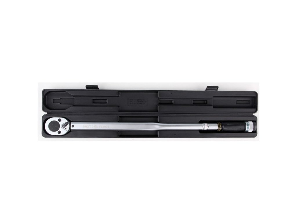 A kulcs króm-vanádium acélból készült, ami tartósságát és szilárdságát biztosítja. Mechanikai dynamometrikus nyúlással rendelkezik, amely a kívánt húzóerő elérését követően egy szeges ugrással jelzi, jellegzetes hangot adva. A pillanatnyi értékek skálája a kulcs fogantyúján található, az állítás a forgatásával történik. A kívánt pillanat beállítása után zárja le a kulcsot a fogantyú végén lévő védelemmel. A kulcsnak GS tanúsítványa van. Összehasonlító táblázat a pillanatnyi értékek különböző hossz- és erőegységekben: 1 kg*cm = 13.887 OZ*in (uncia X hüvelyk) 1 kg*cm = 0.867 LB*in (font X hüvelyk) 1 kg*m = 9,80665 n*m (Newton x méter) 1 kg*m = 7,233 lb*ft (font x láb) 1 ft*lb = 12 lb*in (font x hüvelyk) 1 dm*n = 14.16 oz*in (uncia x hüvelyk) Főként autótechnikában használják a pontos rögzítéshez, és bárhol, ahol a gyártó meghatározta a csatlakozó meghúzásának szükséges idejét. - Válassza ki a megfelelő NM vagy In-LBS skálát. Nyissa ki a mikrométer gombot. - Helyezze a mikrométer gombot úgy, hogy a "0" a gomb skáláján megegyezzen a kulcs vállán található függőleges vonallal. - Forgassa a mikrométer gombot az óramutató járásával megegyező irányban, amíg a kívánt nyomaték beállítva nincs. - A kívánt nyomaték be van állítva, amikor a mikrométer gomb skálája megegyezik a kulcs vállán található függőleges vonallal. - Ekkor zárja le a mikrométer gombot, és állítsa be a csapágy forgásirányát, ezután a kulcs készen áll a használatra. - A kulcshoz megfelelő tartozékot kell alkalmazni. A beállított pillanat elérésekor a kulcs kattanást ad. Ha hallja vagy érzi a kattanást, hagyja abba a húzást. - dinamometrikus kulcs - gyári kalibrációs tanúsítvány (minden kulcs számára egyedi, a kulcs sorozatszámával jelölve) - használati útmutató - garancialevél - bőrönd