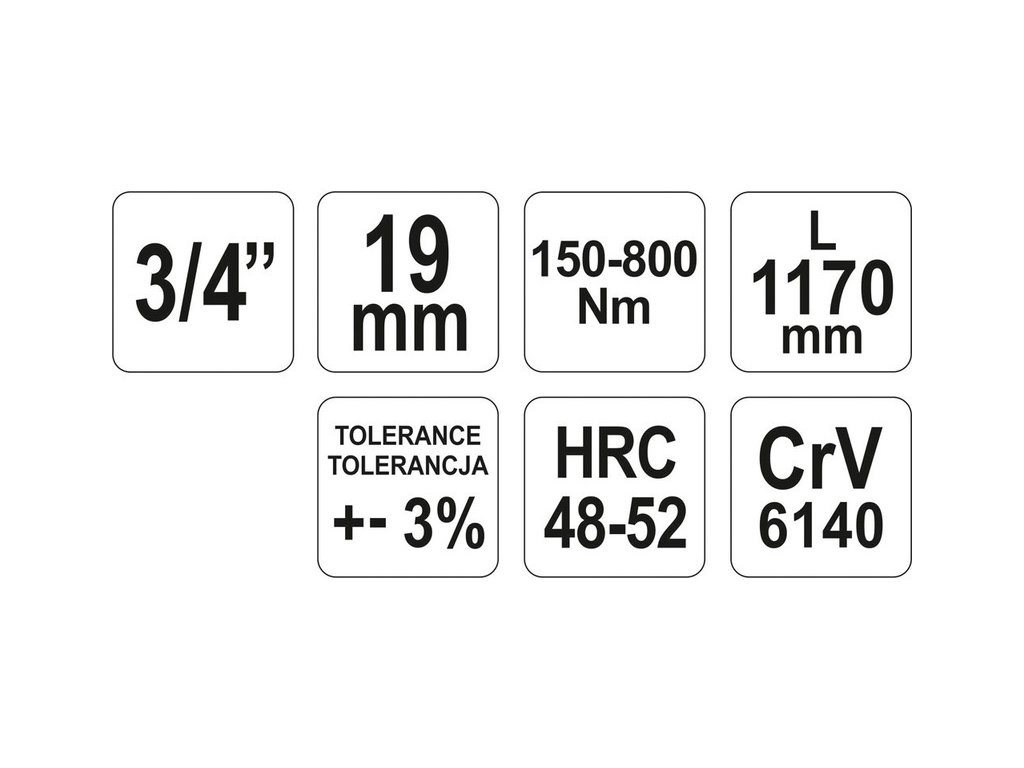 Momentový kľúč 3/4" 150-800 Nm / 1155-1175 mm CrV YATO