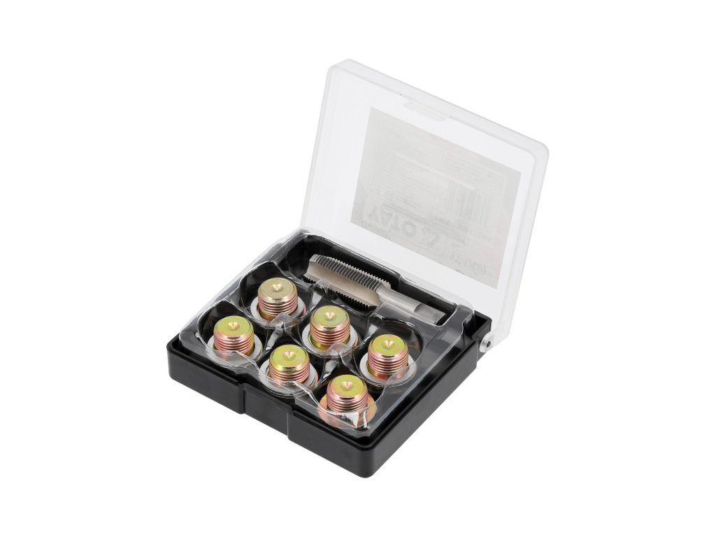 Készlet az olajteknő leeresztő csavarjának, sebességváltóknak stb. egyszerű javításához. Illik a legtöbb, autókon és könnyű teherautókon általában használt menethez.
