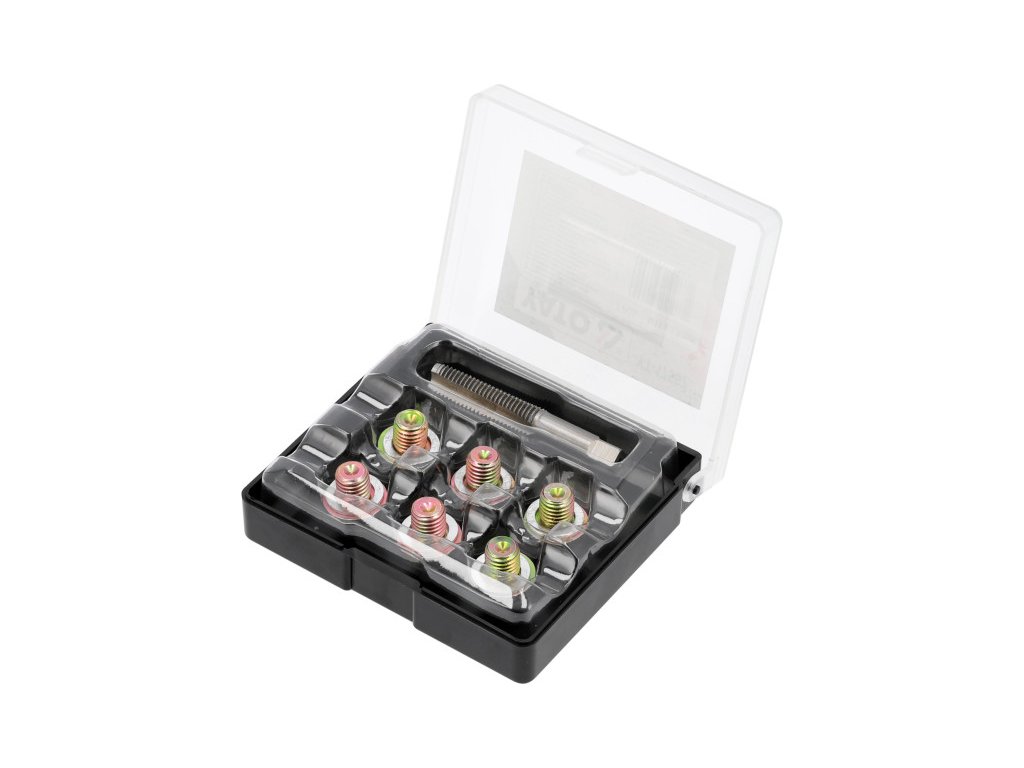 Olajteknő leeresztő csavarmenetek, sebességváltók stb. egyszerű javítására szolgáló készlet. Megfelel az autókon és könnyű tehergépjárműveken általánosan használt menetek többségének.