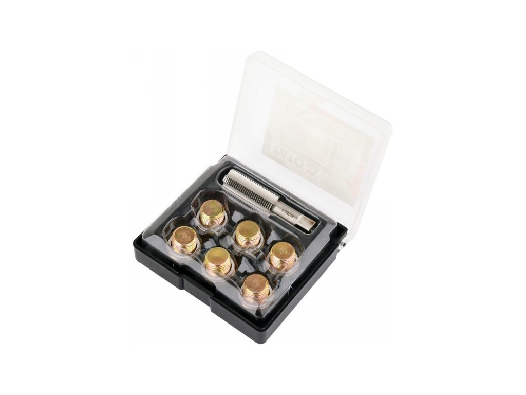 Olajteknő csapleeresztő menetek, váltók, stb. egyszerű javítására szolgáló készlet. Illeszkedik a személygépkocsikban és könnyű tehergépjárművekben leggyakrabban használt menetekhez.