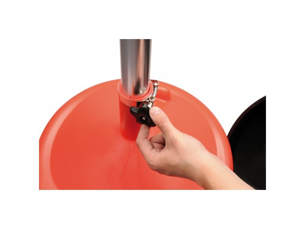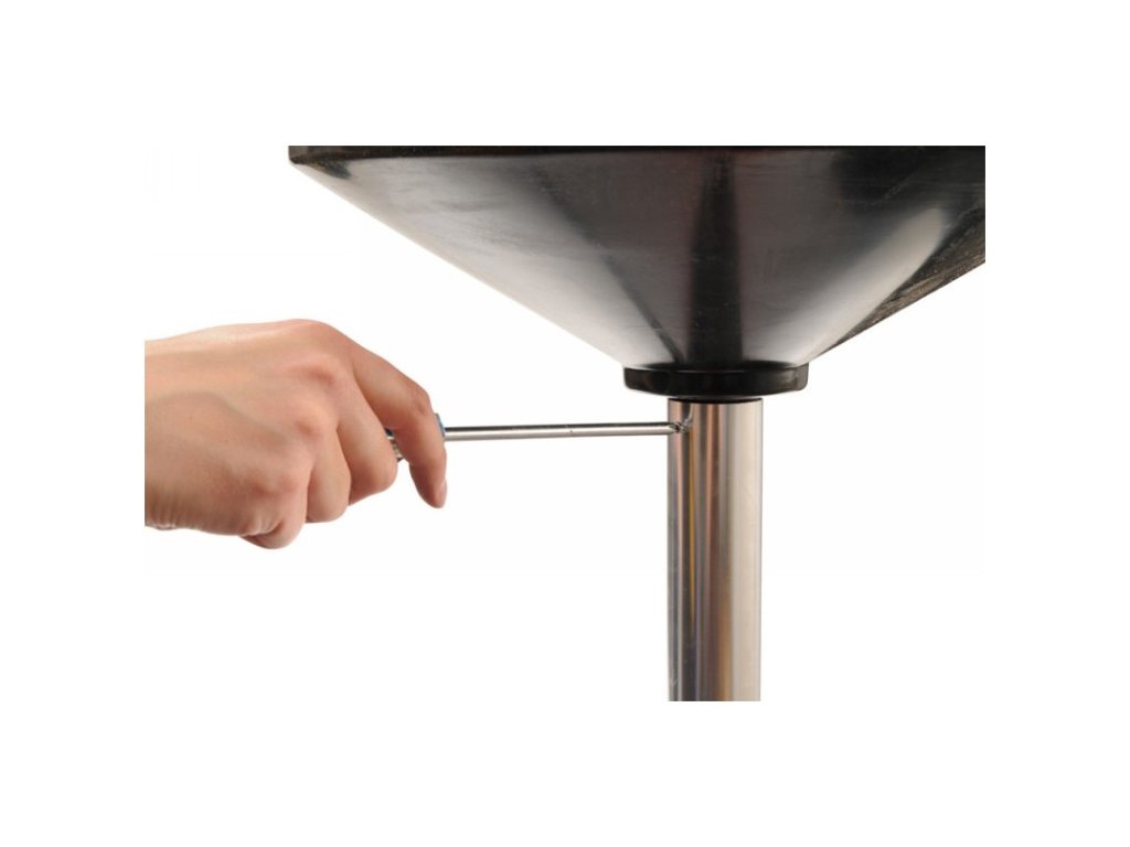 Jellemzője a széles 420 mm átmérőjű leeresztő tálca, amely biztonsági ráccsal van befejezve, ami megkönnyíti az olaj kiöntését, valamint egy 20 literes mosdótartály., mely továbbá forgatható görgőkkel van felszerelve, ami megkönnyíti a mosdó mozgatását a munkaterületen. A acélcső használatának köszönhetően a termék munkamagassága állítható 750 mm-től 1550 mm-ig.