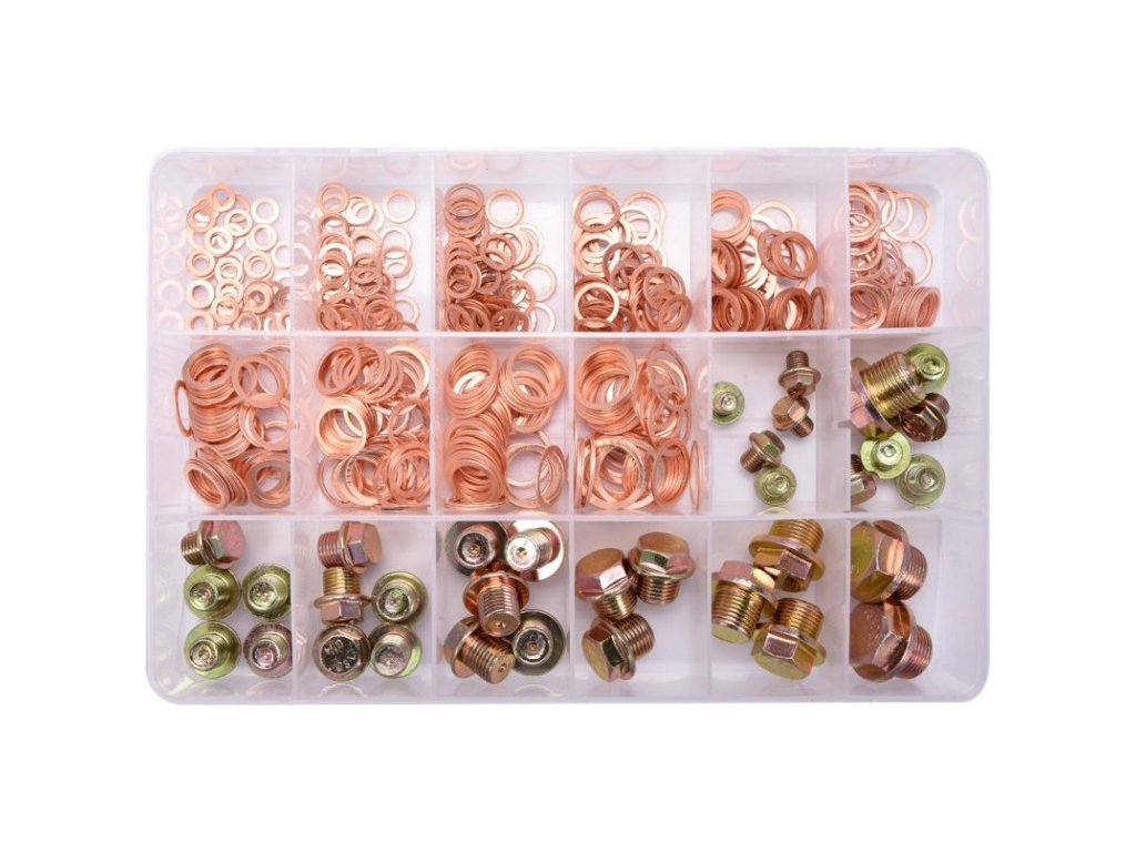 Sada medených podložiek a odtokových zátok, 534 ks, mix veľkostí