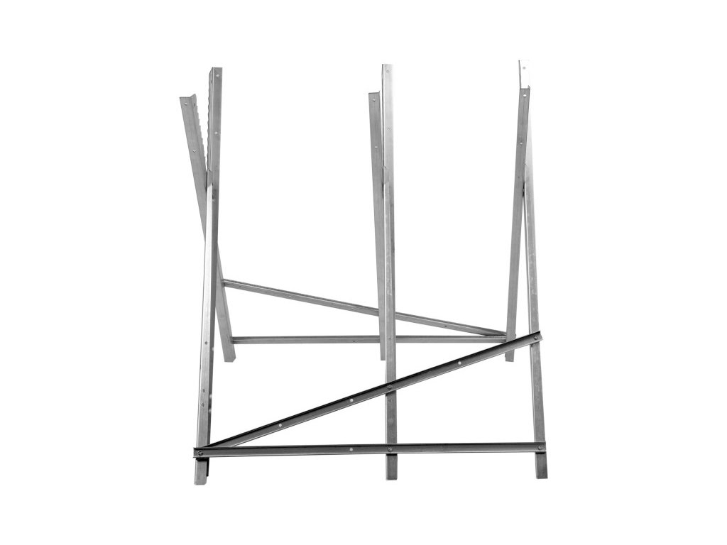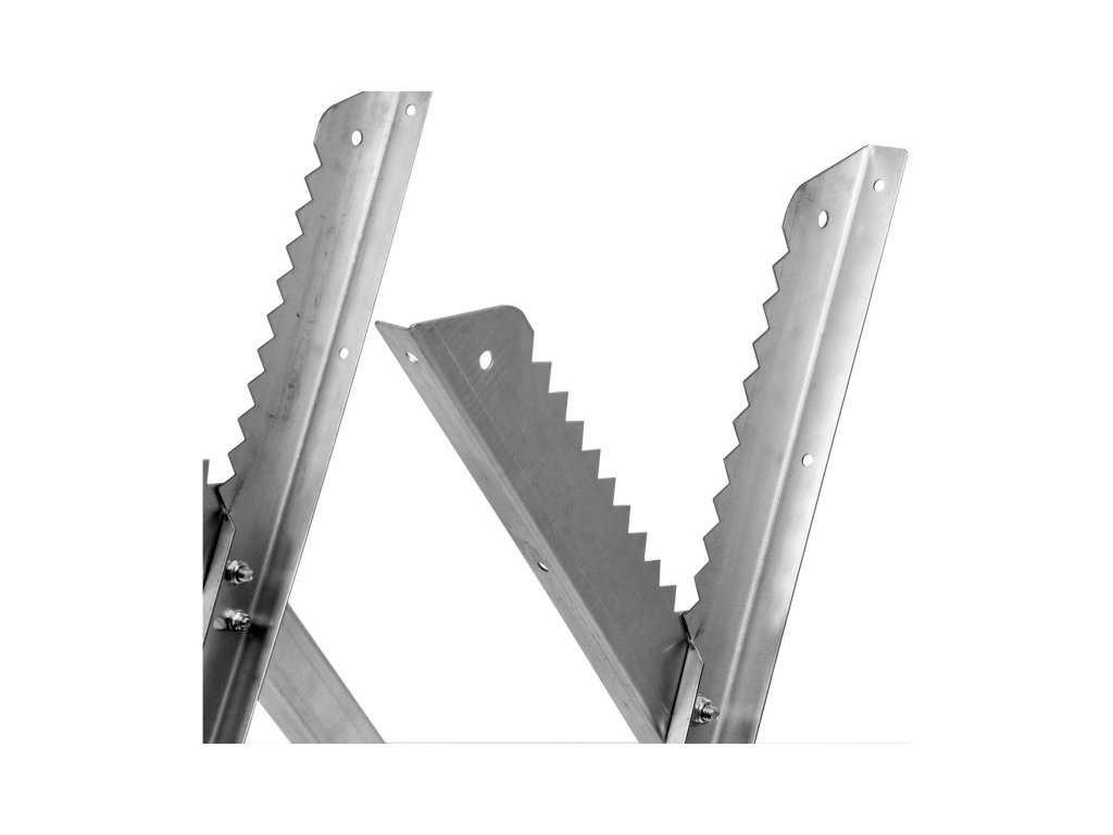 Fa vágó bak. 1,5 mm vastagságú galvanizált acéllemezből készült. A bak összecsukható, összecsukva nagyon kevés helyet foglal el, így könnyen szállítható és tárolható. A speciális kialakítás lehetővé teszi a teljes törzs láncfűrésszel történő vágását anélkül, hogy le kellene állítani és letenni a fűrészt, illetve mozgatni a törzset.