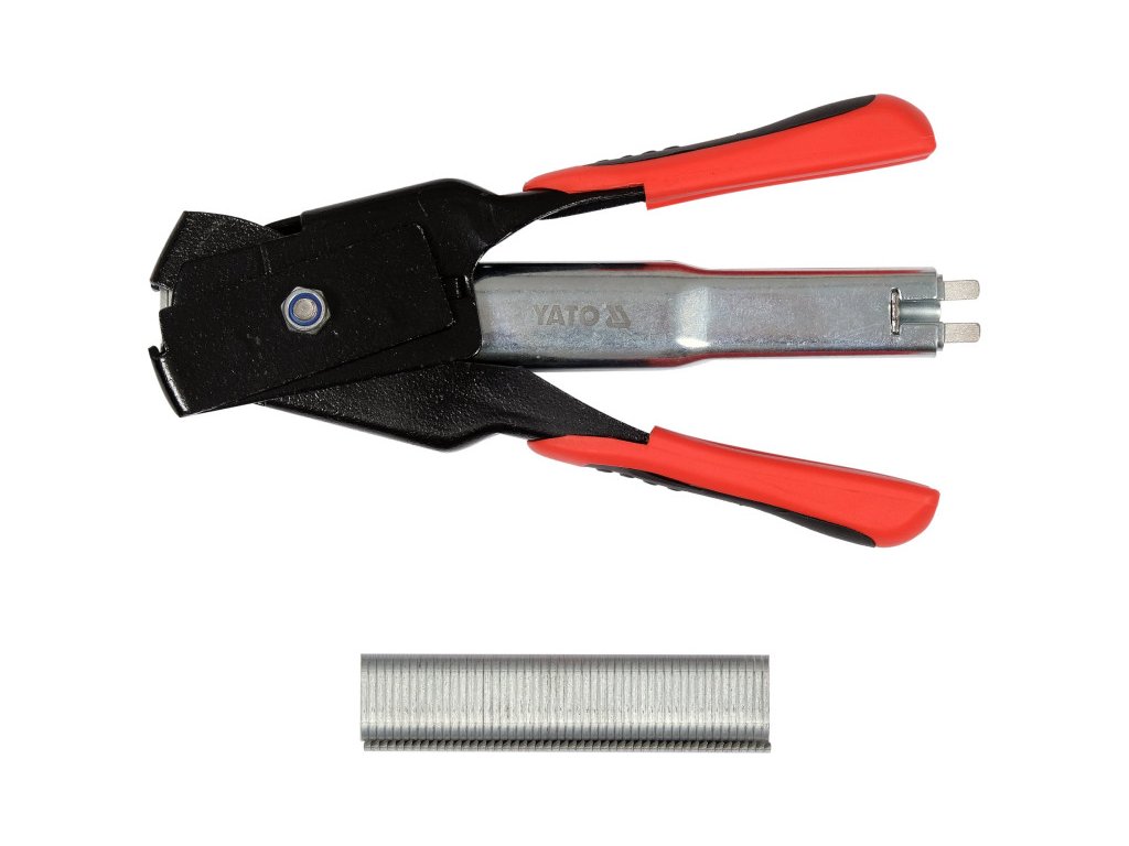 Kliešte určené na upevnenie drôtov a plotových sietí z pozinkovanej ocele Dĺžka: 190 mm Priemer utiahnutých spôn: 4-6 mm. upevňovacie drôty a plotové siete Povrchová úprava Pozinkované Dĺžka (mm) 190 Materiál rukoväte PP, TPR Typ príchytky C Kompatibilné YT-51471 Hrúbka sponky (mm) 2 Šírka sponky (mm) 20 Obsah sady: kliešte, sponky x100 ks.