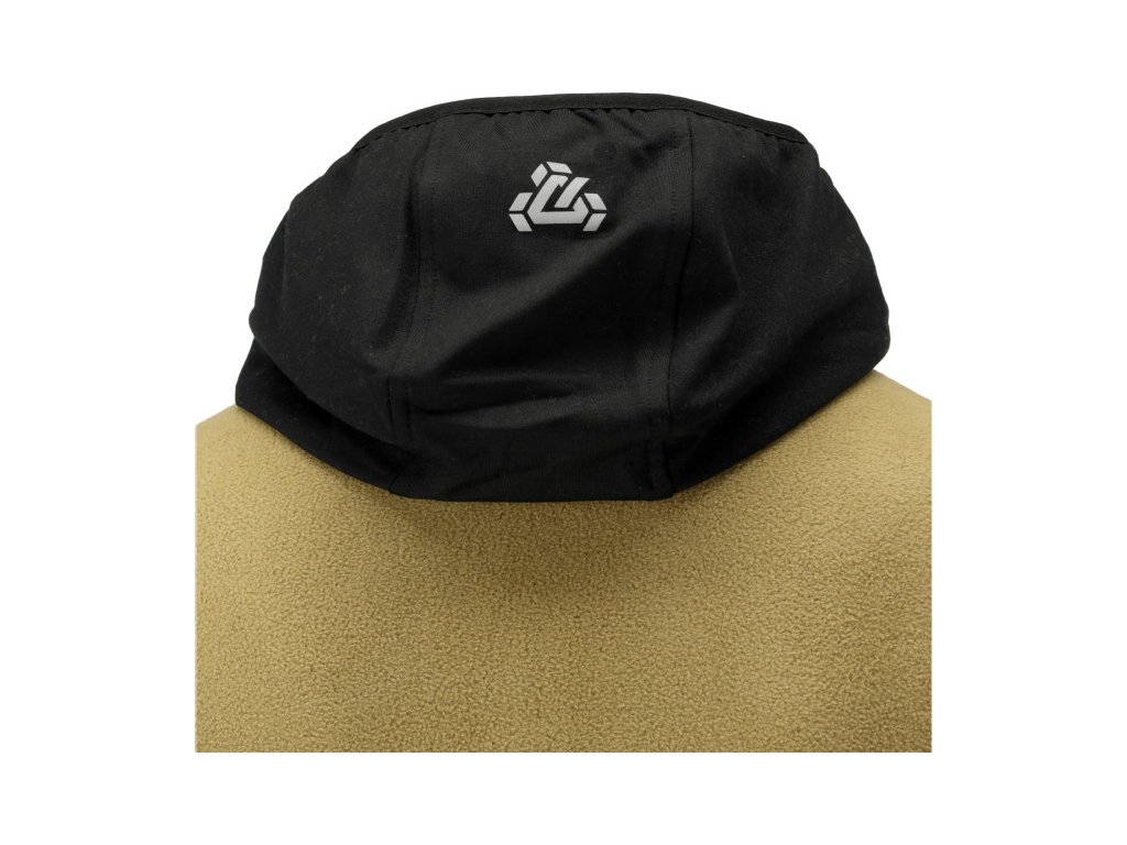 - A 2-irányban nyúló szövet a kapucni részét is alkotja, amely belül finom szövésű tartós poliészter anyaggal van megerősítve. Ennek eredményeként a kapucni védi a széltől, miközben szorosan illeszkedik a fejhez, és a magasított gallérnak köszönhetően nincs szükség zsinórra