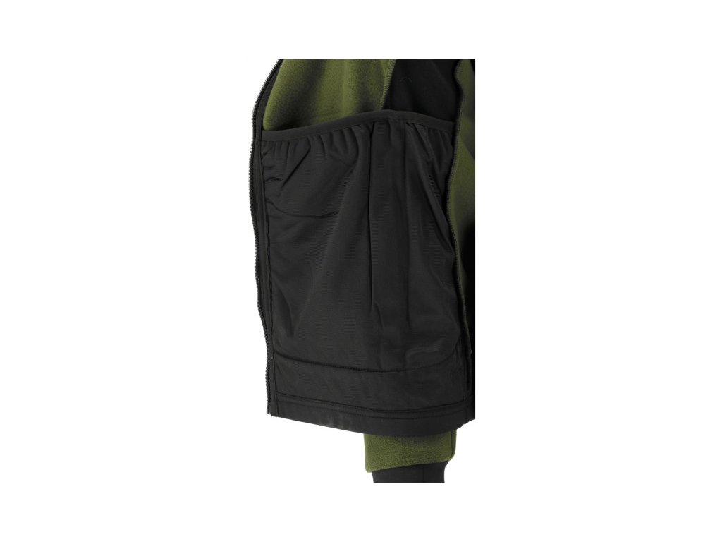 - A 2-utas stretch anyag az oldalakon, a karok alatt és részben a ujjak alatt csökkenti a hagyományos polar anyagokból ismert kellemetlenségeket, pl. törzscsavarásnál vagy fej feletti karhasználatnál. Jobb légáramlást is biztosít, így kevesebb izzadást eredményez, különösen a hónaljban