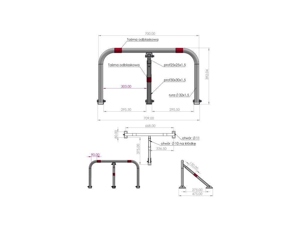 Összecsukható parkolózárási "kapu" hatékonyan védi a területeket a jogosulatlan behajtástól vagy parkolástól. Kényelmet és biztonságot nyújt a kijelölt területekhez való hozzáférés kezelésében. Lehetővé teszi, hogy ideiglenesen lezárjuk a parkolóhelyeket vagy bejárati utakat, például magántulajdonon, gyalogos és közúti utakon, zöldterületeken, árvízvédelmi töltéseken, járdákon.