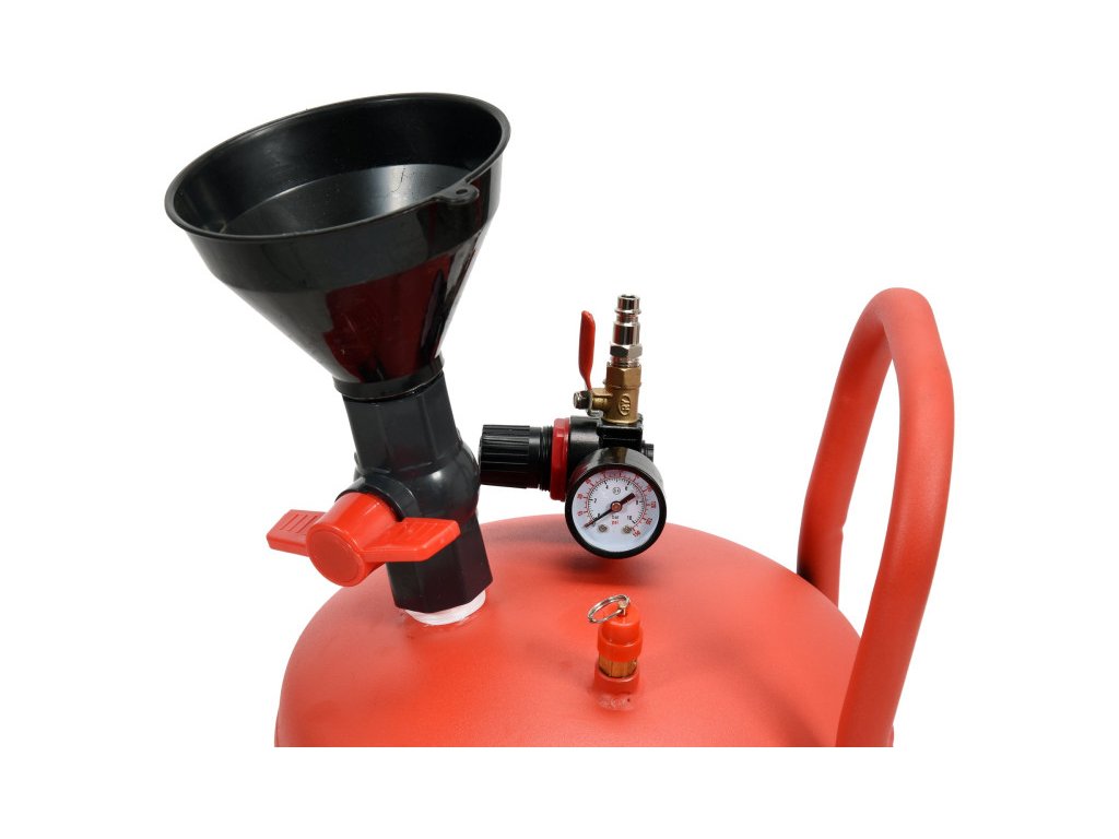A pneumatikus olajfeltöltő lehetővé teszi, hogy gyorsan, hatékonyan és biztonságosan töltsd fel olajjal a gépeket vagy azok alkatrészeit. A tartály rugalmas csővel van összekötve a lándzsával, ami megkönnyíti a munkát még a nehezen hozzáférhető helyeken is.
