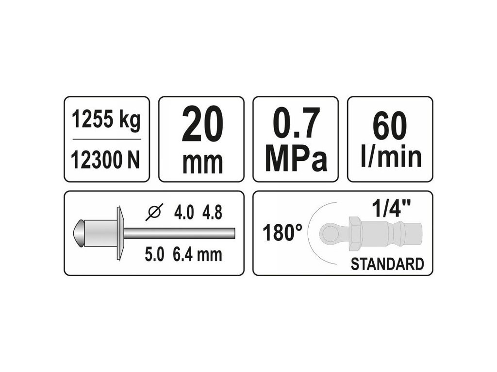 YATO Pneumatický uťahovač nitov 1/4 4,0 - 6,4 mm