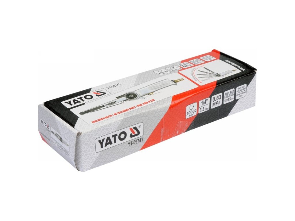 Technické údaje Hmotnosť 1,0 kg Veľkosť pásu 10x330 mm Prevádzkový tlak vzduchu 6,3 bar Rýchlosť otáčok 20000/min Spotreba vzduchu 170 l/min Veľkosť prípojky vzduchovej hadice 1/4