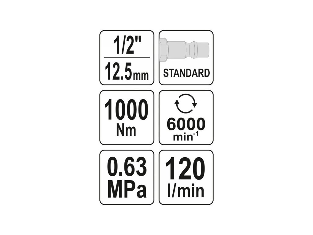 YATO Pneumatický rázový unášač 1/2 1000 Nm