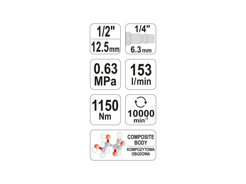 YATO pneumatikus kulcs 1/2" 1150 Nm.