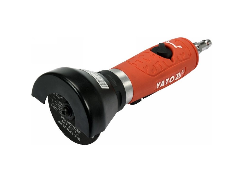 Könnyű és praktikus pneumatikus sarokcsiszoló karosszériaelemek, valamint lemez és fémszerkezetek vágására. Ipari és autóipari munkákra ajánlott.