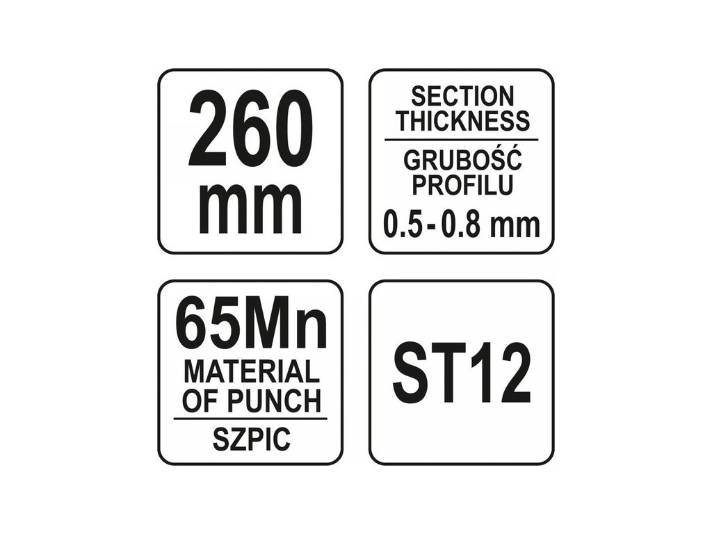 Profilové kliešte (na sadrokartón) 260 mm d= 0,5-0,8 mm YATO