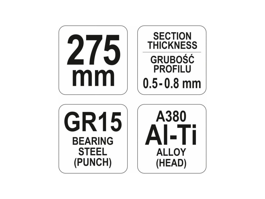 • L= 275 mm • Hrúbka uchopiteľného materiálu: 0,5-0,8 mm • Čeľusť zo zliatiny Al-Ti