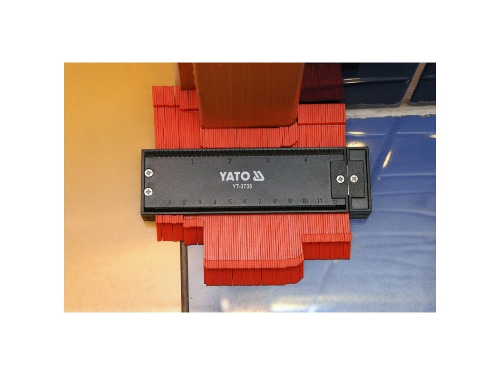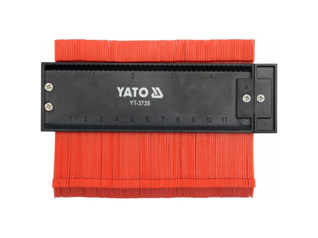 Levehető mérőeszköz műanyagból. Minták másolására és átadására tervezték az alkatrész anyagára. Különösen hasznos a burkolás és a befejező munkák során.