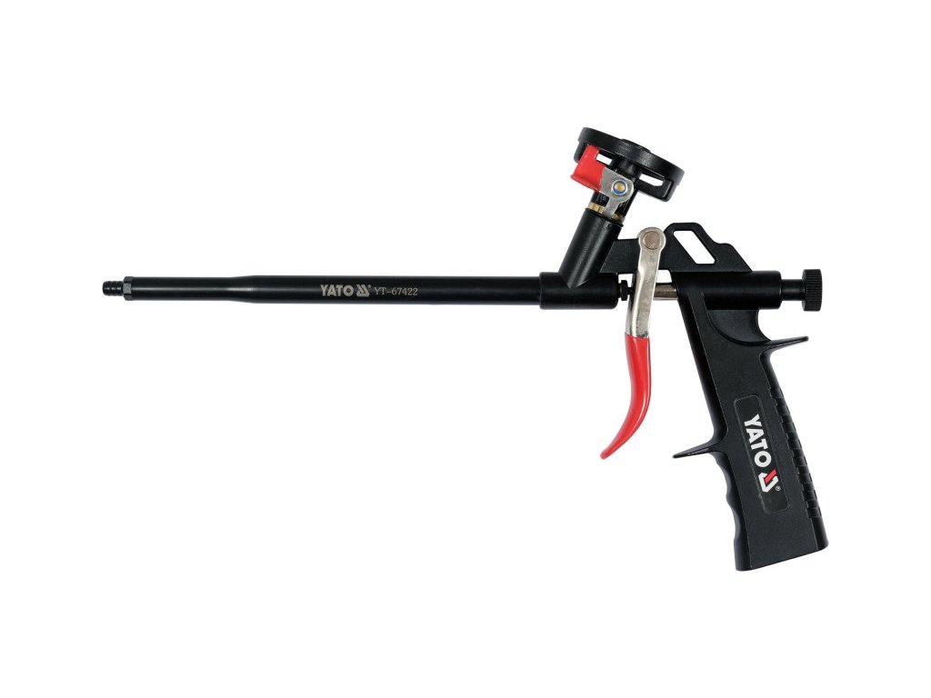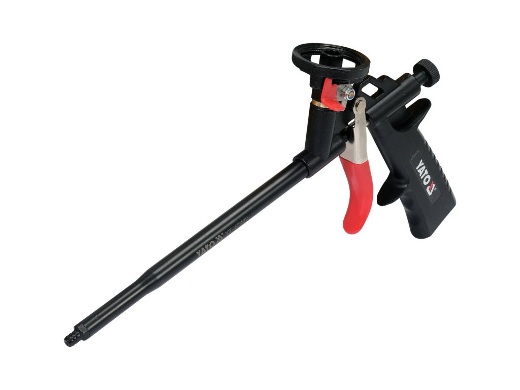Habfúvó pisztoly építkezéshez, szereléshez és szigeteléshez. A pisztoly teste és kosara alumínium alapú öntvényből készült. Mindent PTFE-vel bevontak. A kosár alatt található egy szelep, amely szabályozza a hengerből kifolyó hab mennyiségét.