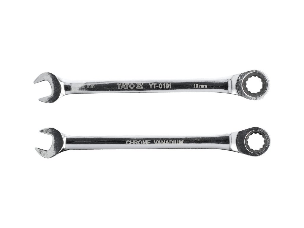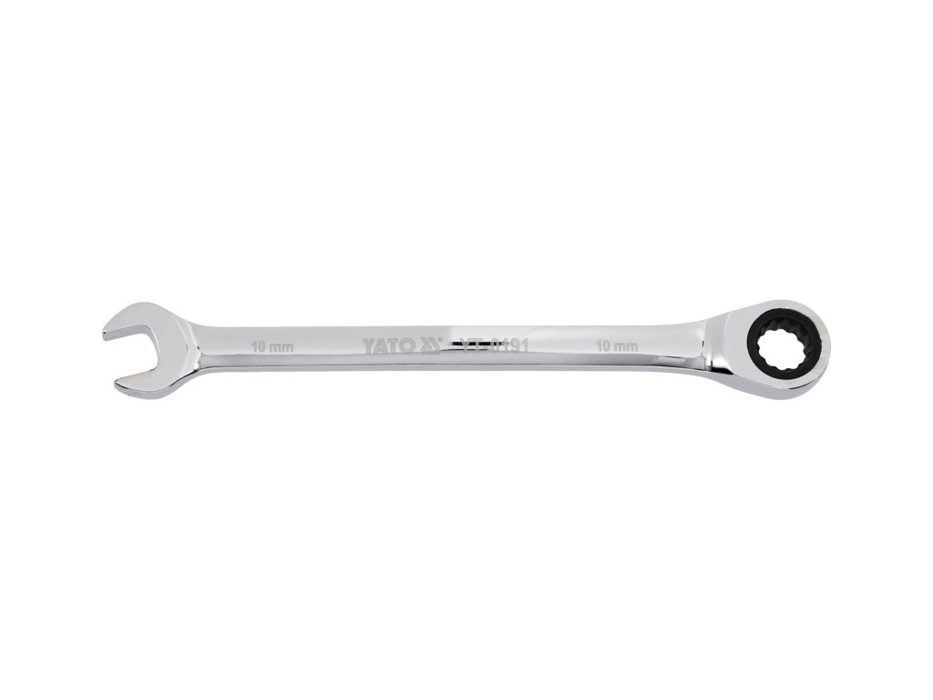 • račňový kľúč • rozmer: 10 mm • dĺžka: 160 mm • počet zubov račne: 72 ks • mierka račne: 5° • materiál: CrV