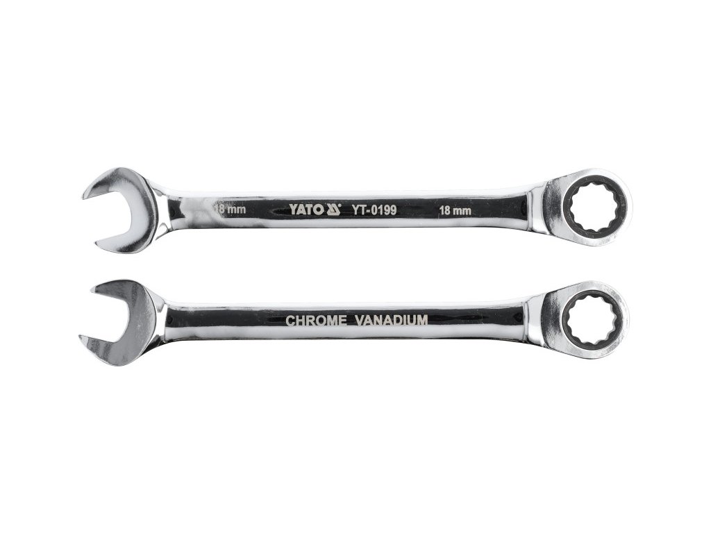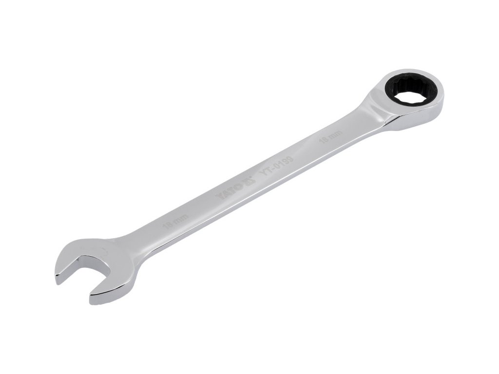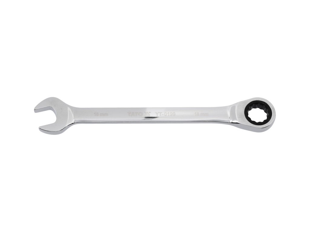 • račňový kľúč • rozmer: 18 mm • dĺžka: 235 mm • počet zubov račne: 72 ks • mierka račne: 5° • materiál: CrV