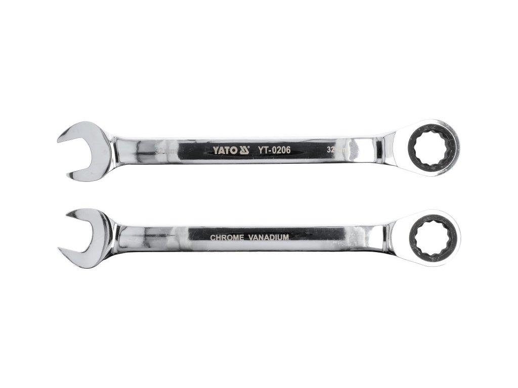• račňový kľúč • rozmer: 32 mm • dĺžka: 420 mm • počet zubov račne: 72 ks • mierka račne: 5° • materiál: CrV