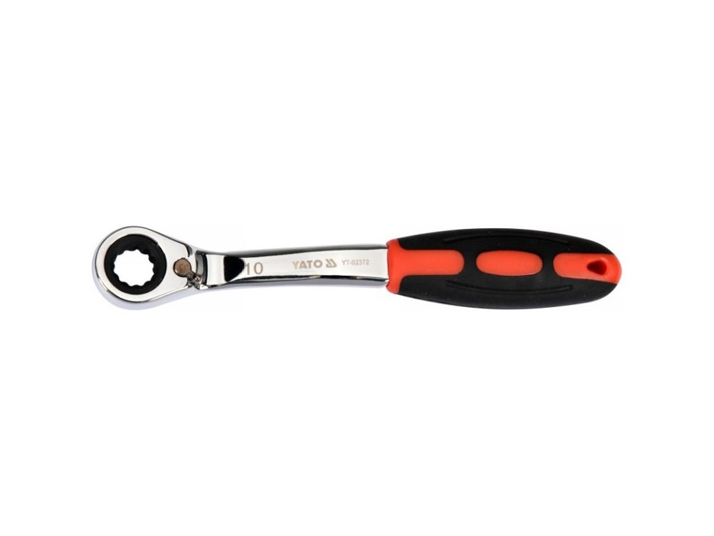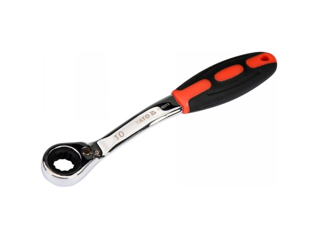 Egy csavarok lazítására tervezett racsnis kulcs görbült profilú kialakítással. Javasolt autószervizeknek.