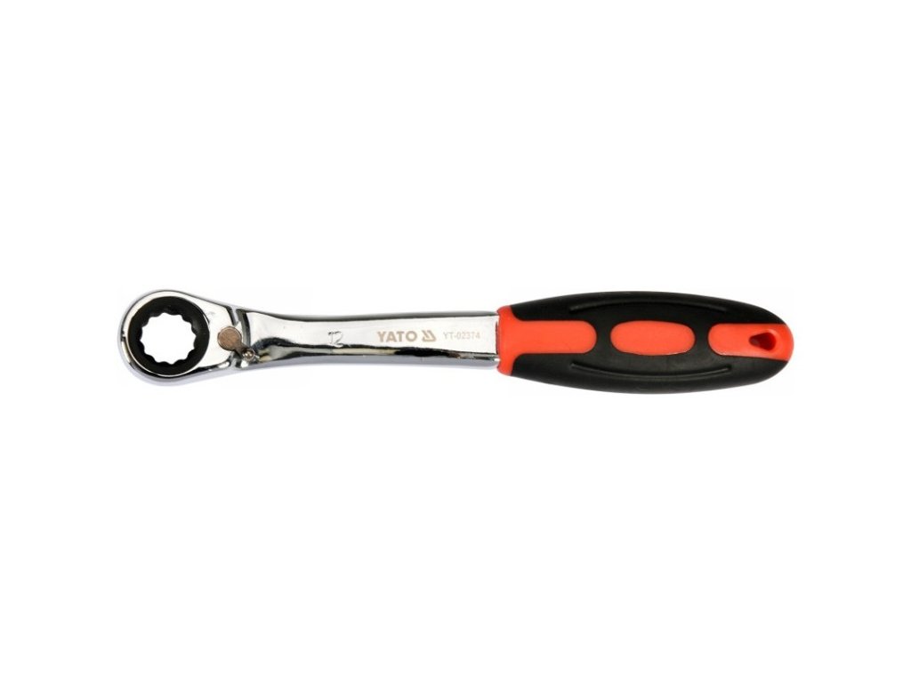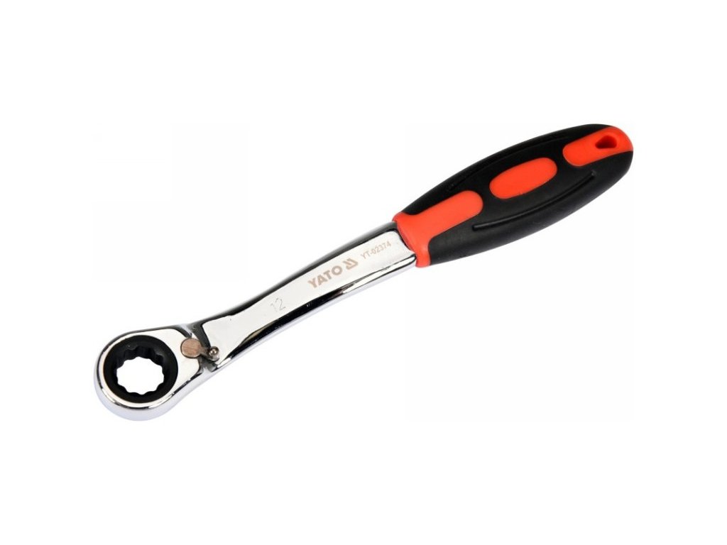 Reteszel ellátott csavarkulcs hajlított profilú, csavarok lazítására tervezve. Ajánlott autós szervizek számára.
