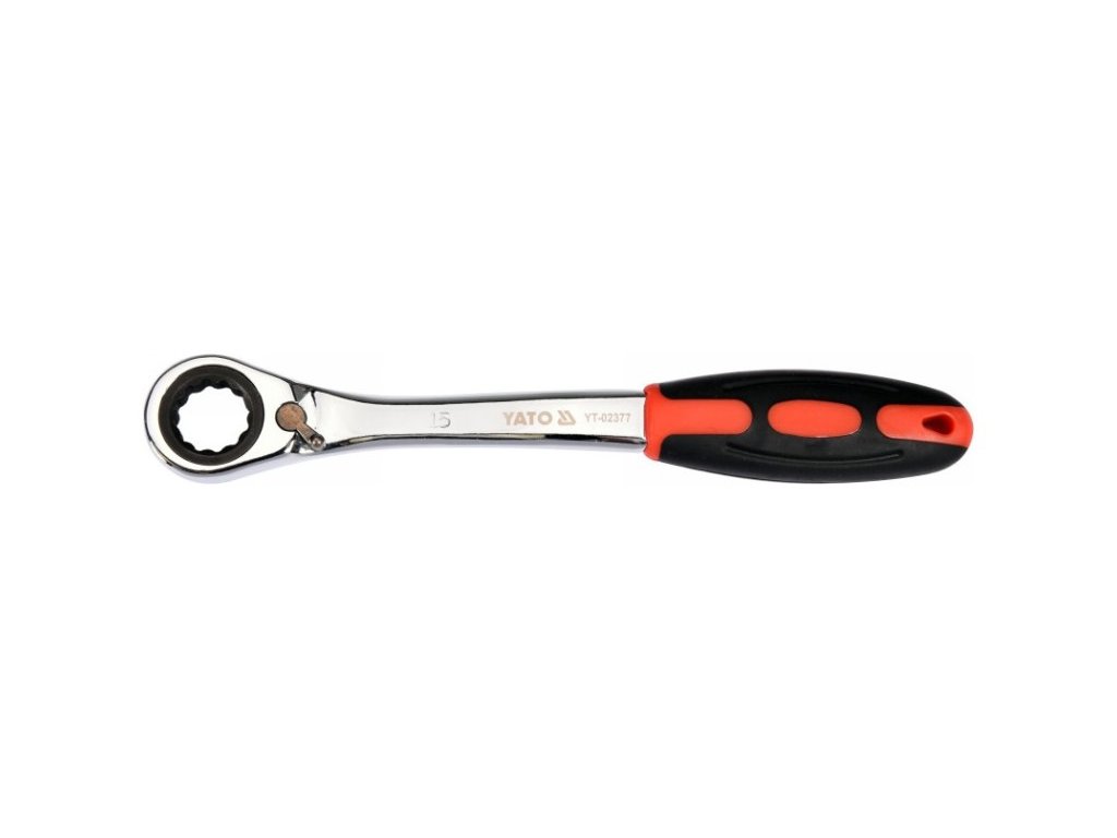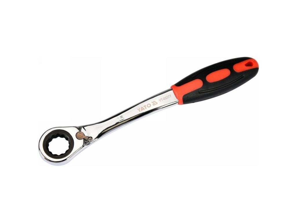 Egy csavarkulcs, amelynek racsnija és hajlított profilja van, és csavarok lazítására tervezték. Ajánlott autós szolgáltatásokhoz.