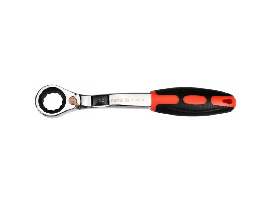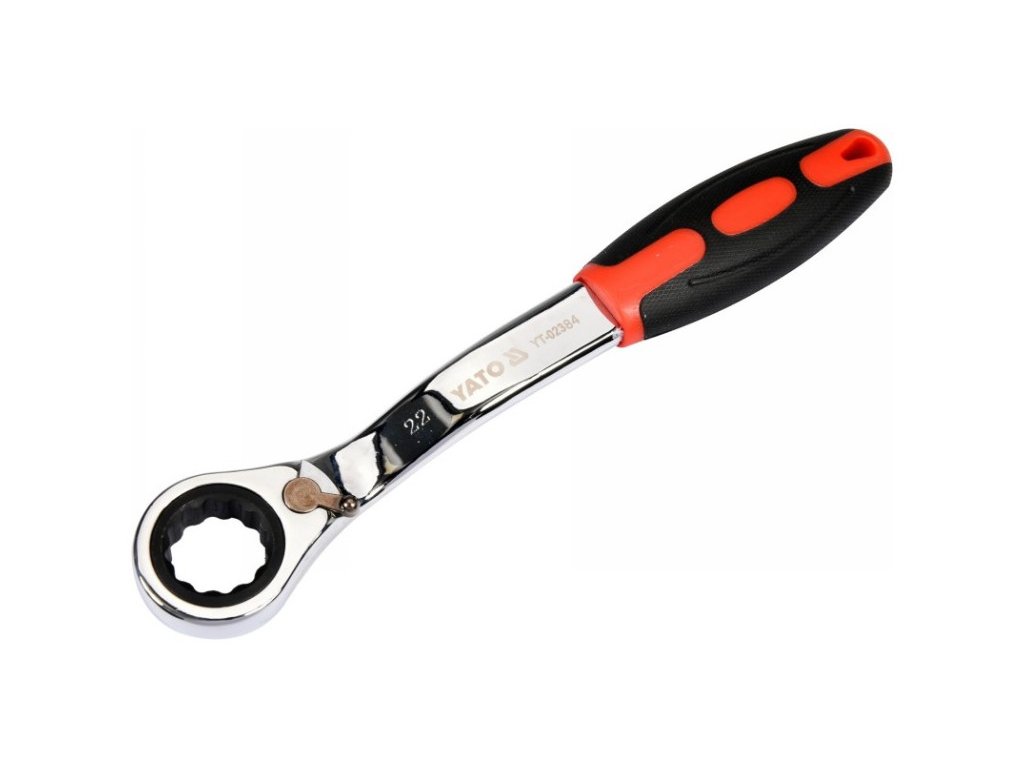 Egy csavarkulcs rátéttel és hajlított profillal, amely csavarok lazítására lett tervezve. Ajánlott autószervizek számára.